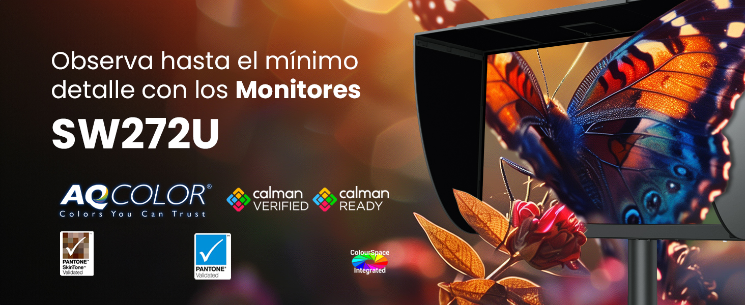 El monitor BenQ SW272U está diseñado para fotógrafos y profesionales de la imagen que buscan la máxima precisión y coherencia cromática en resolución 4K UHD. Su panel Nano Mate con textura similar al papel ofrece una experiencia visual natural y sin reflejos, ideal para edición fotográfica profesional. Con una cobertura del 99 % Adobe RGB y 100 % sRGB, calibración de hardware y conectividad USB-C de 90 W, garantiza un flujo de trabajo fluido y colores fieles desde la captura hasta la impresión.