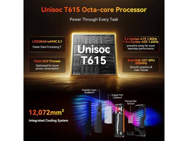 - Procesador Unisoc T615 Octa-Core