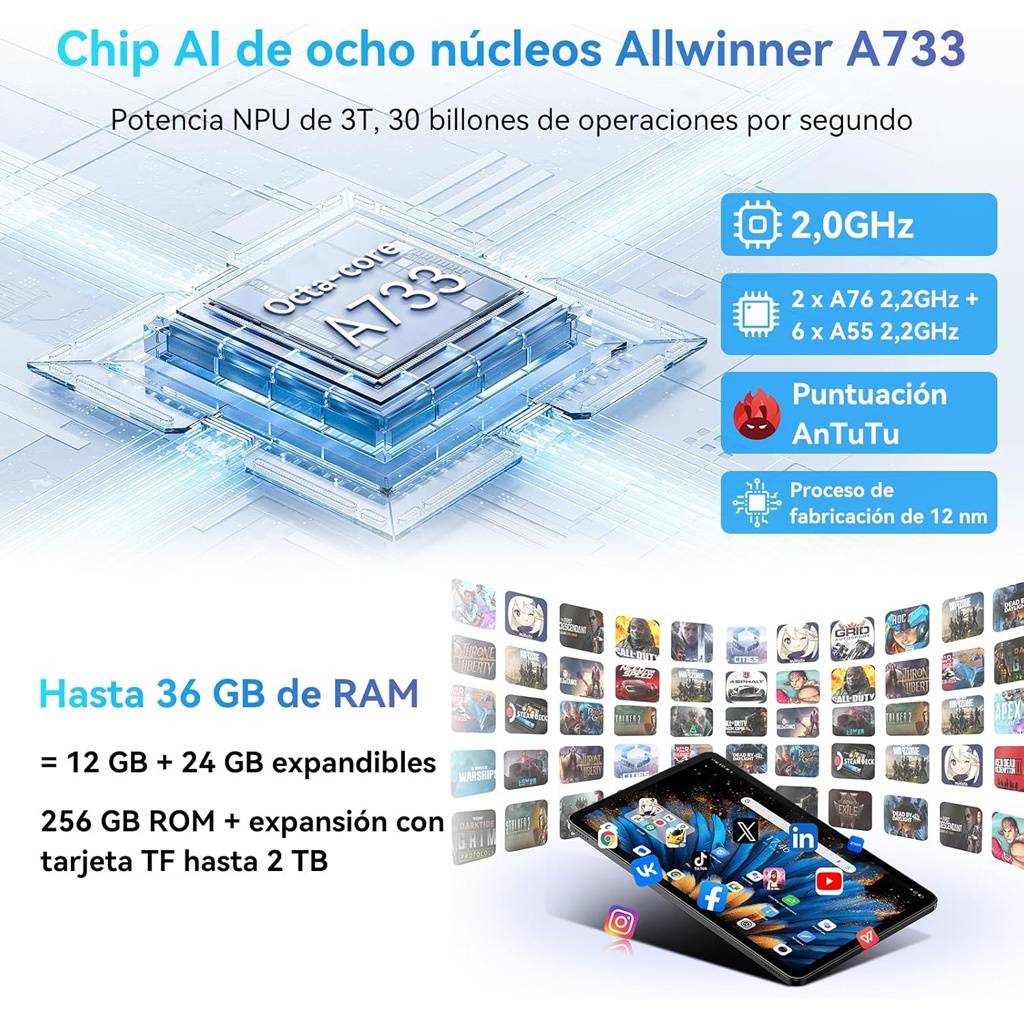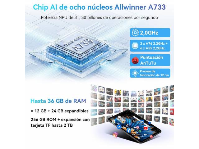 Procesador: AllWinner A733 / Unisoc T615 (Octa-core)