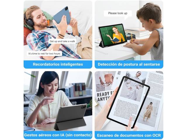 Esta tableta de pantalla súper grande de 12 pulgadas ofrece un amplio campo de visión, haciendo que ver películas, trabajar y estudiar sea más inmersivo. Innovador control de gestos en el aire, sin necesidad de tocar la pantalla. Simplemente desliza el dedo para pasar páginas, tomar capturas de pantalla y ajustar el volumen, haciendo que la operación sea más inteligente y conveniente.