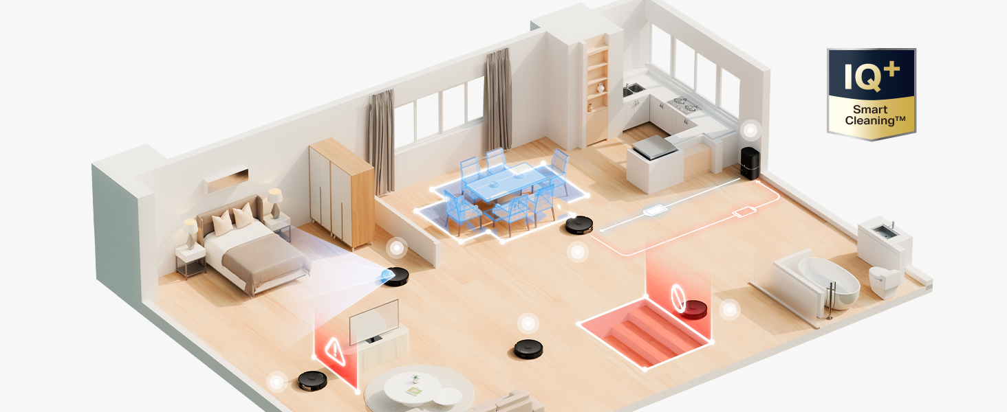 - Limpieza personalizada. Une y separa áreas, configura el programa de limpieza y adapta los modos de limpieza para cada habitación.