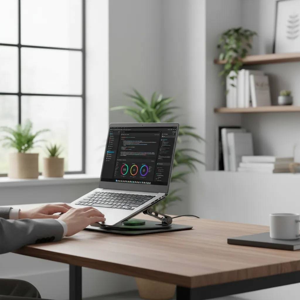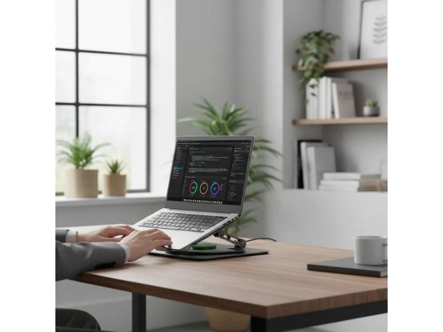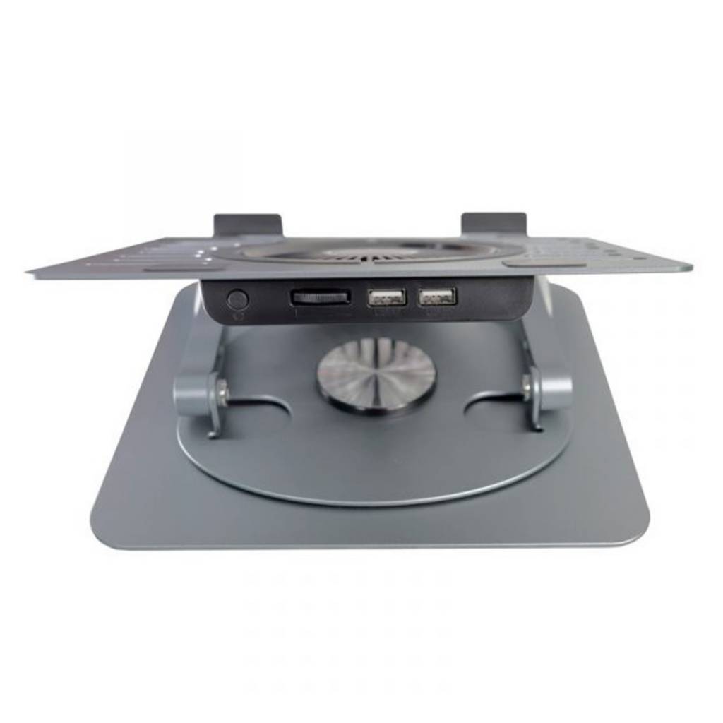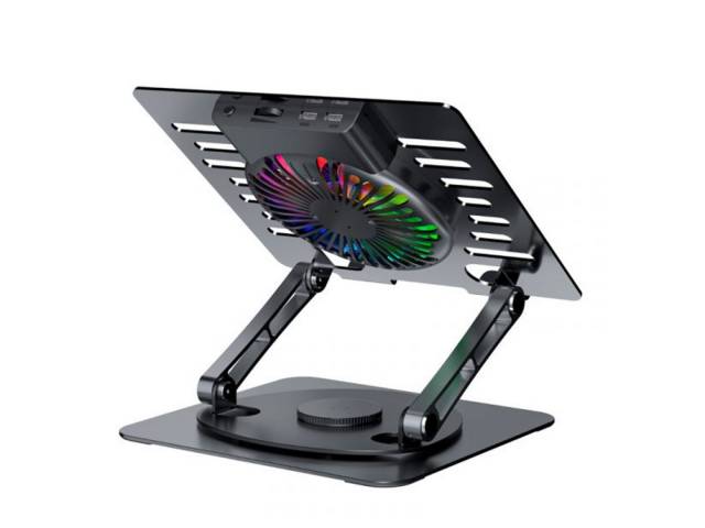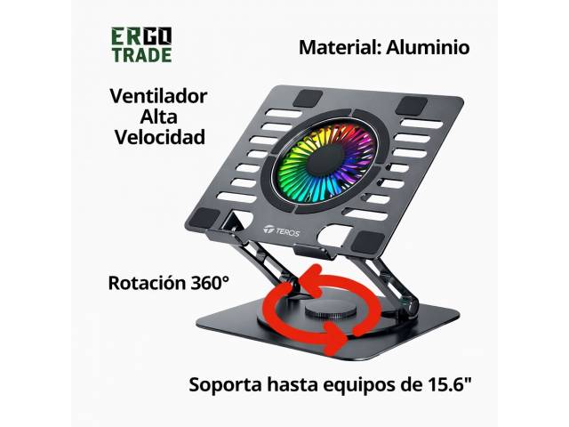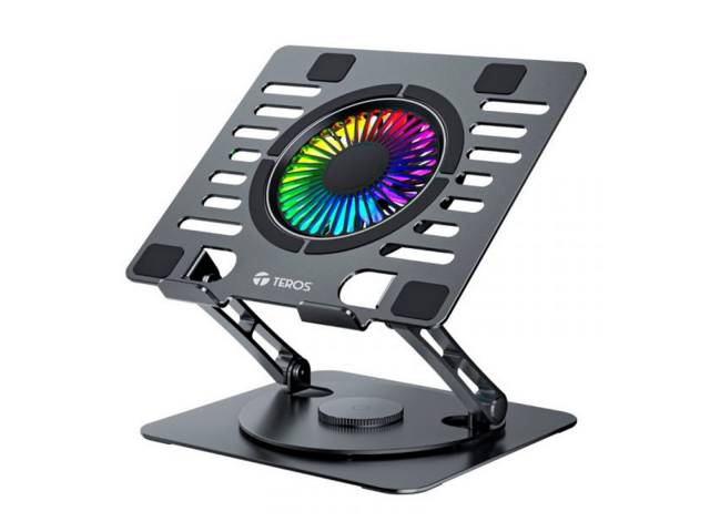 El Cooler Pad RGB Teros TE-7132N es una base ergonómica diseñada para notebooks, portátiles y tablets de hasta 15.6". Su diseño en aleación de aluminio y silicona ofrece estabilidad, soporte seguro y un acabado elegante. Permite ajustar el ángulo de inclinación para mejorar la postura y reducir la fatiga, e incorpora una plataforma con rotación de 360° para orientar el equipo en cualquier dirección. Cuenta con un ventilador central de 1200 RPM con control de velocidad para mantener una temperatura adecuada en largas jornadas de uso. Además, incluye efectos RGB y dos puertos USB adicionales para mayor conectividad.