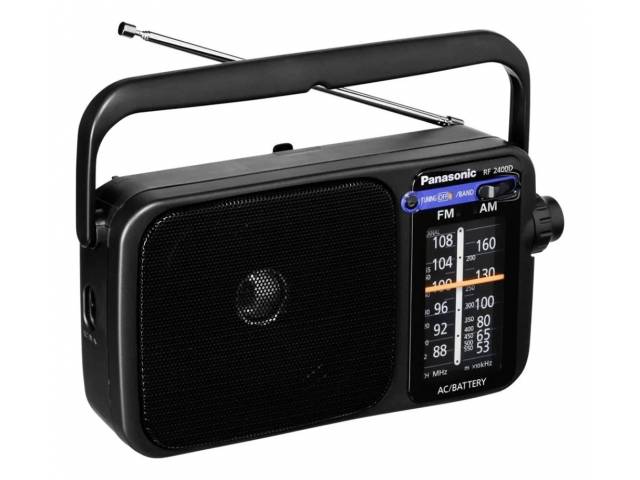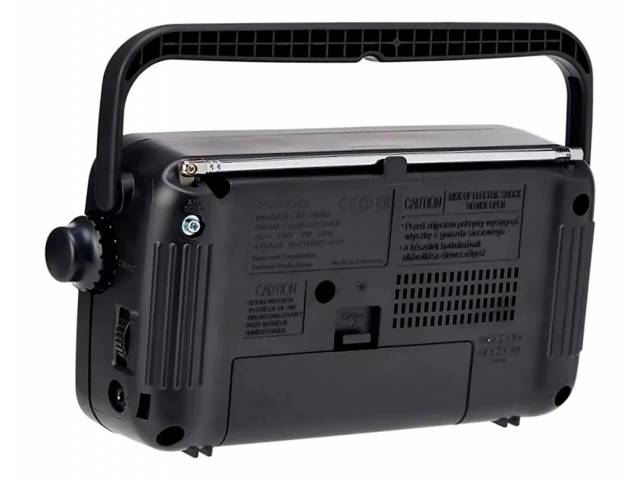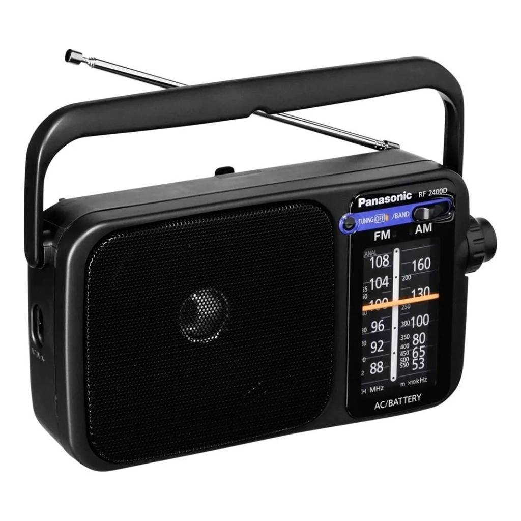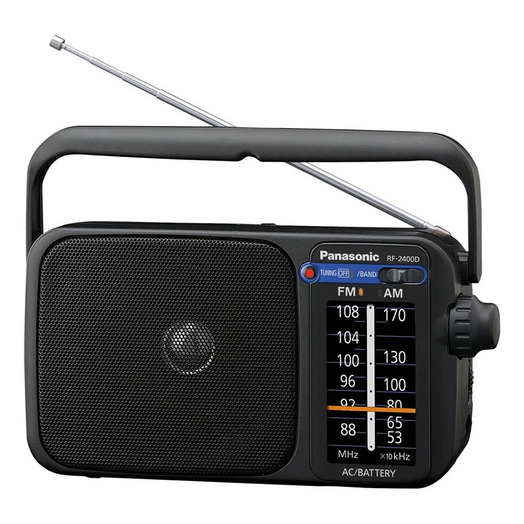 Radio portátil clásica y confiable, ideal para escuchar emisoras AM y FM con excelente recepción. Cuenta con sintonizador digital, parlante de gran tamaño para un sonido claro, antena telescópica, entrada para auriculares y doble alimentación, funcionando tanto con pilas como con corriente eléctrica.