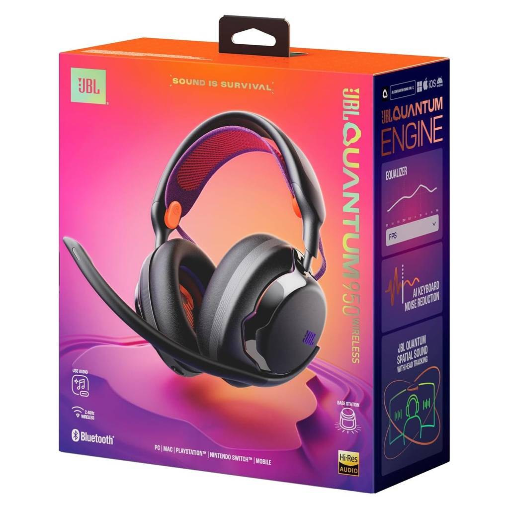 Los JBL Quantum 950 (JBLQTUM950BLK) son auriculares gamer inalámbricos de alta gama diseñados para ofrecer una experiencia de audio inmersiva y competitiva. Incorporan drivers dinámicos de carbono de 50 mm que entregan el potente sonido JBL Quantum Sound, junto con JBL Quantum Spatial Sound con seguimiento de cabeza, lo que permite percibir con precisión la dirección de cada sonido dentro del juego. También incluyen cancelación de ruido adaptativa, micrófono boom cardioide con reducción de ruido y conectividad múltiple mediante 2.4 GHz inalámbrico de baja latencia, Bluetooth 5.3 o cable. Su sistema de doble batería intercambiable permite hasta 50 horas de uso total, ideal para sesiones prolongadas de gaming.