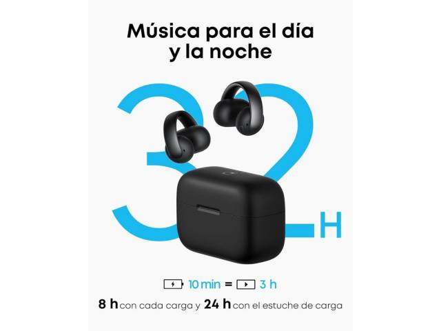 Diseño Open-Ear. 10 horas en auriculares, 30 horas total. IPX4. 2 micrófonos. BT 5.3.