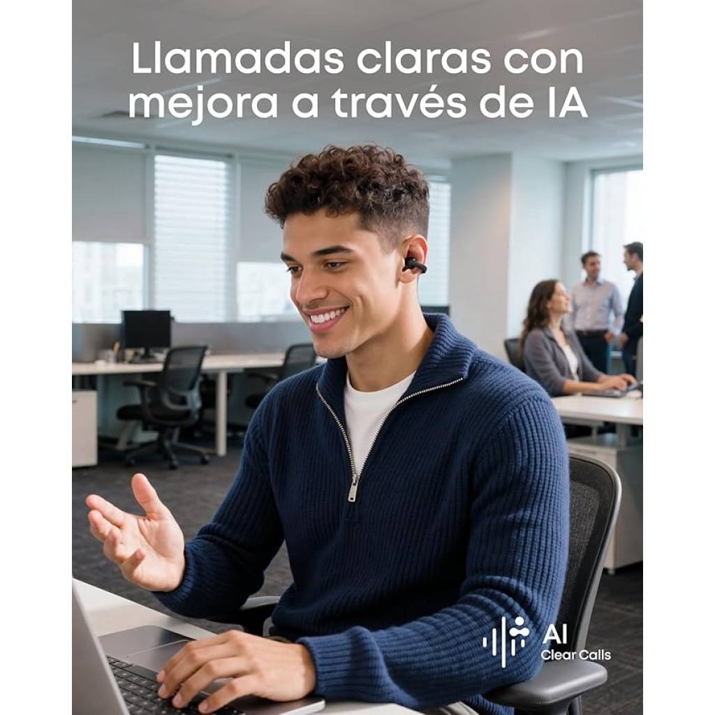 Auriculares inalámbricos de diseño open ear pensados para máxima comodidad, estabilidad y libertad. Su estructura liviana con tecnología FlexiClip permite un ajuste seguro sin presionar el canal auditivo, manteniéndote atento a tu entorno mientras disfrutás de tu música o llamadas.