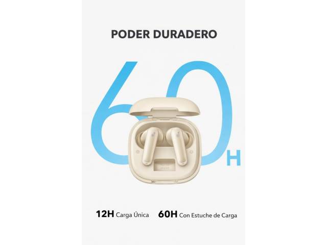 12 horas en auriculares. 60 horas total. Cancelación de sonido. IPX5. 6 micrófonos. BT 5.3.
