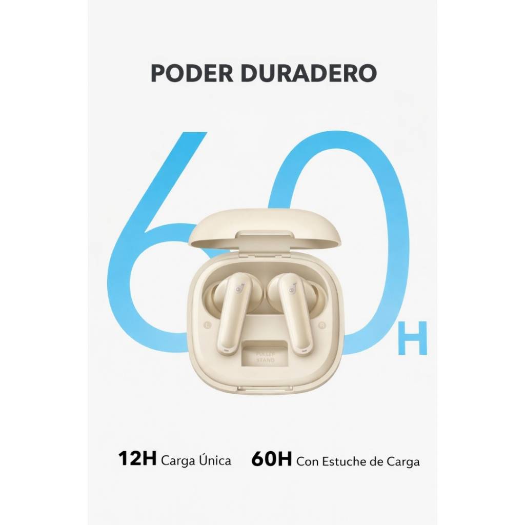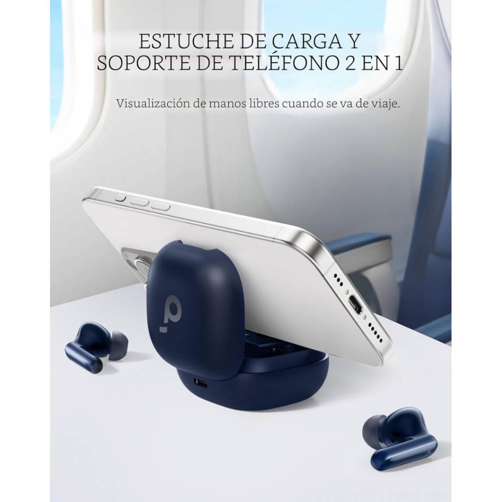 Los Soundcore P40i están diseñados para quienes buscan una experiencia de audio potente, comodidad diaria y autonomía sobresaliente. Incorporan cancelación activa de ruido inteligente, que se adapta automáticamente al entorno para aislar los sonidos externos, junto con drivers de gran tamaño y tecnología BassUp para graves profundos y dinámicos. Su batería destaca con hasta 60 horas de uso total, mientras que la calidad de llamadas se ve reforzada por 6 micrófonos con inteligencia artificial. Además, el estuche multifunción funciona también como soporte para teléfono, ideal para disfrutar contenido con manos libres en cualquier lugar.