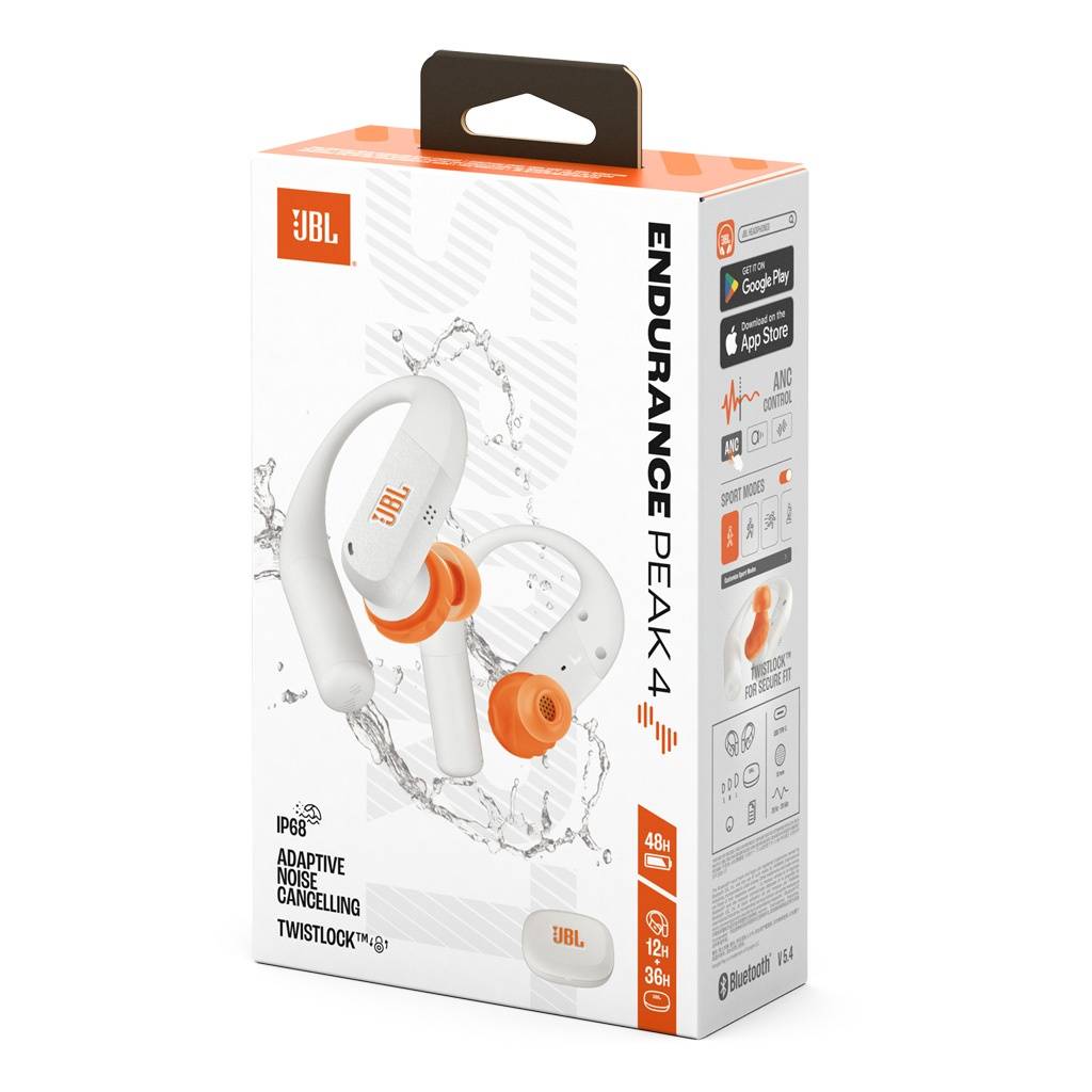 Los JBL Endurance Peak 4 son auriculares deportivos True Wireless diseñados para entrenamientos intensos y uso al aire libre. Incorporan JBL Pure Bass con Spatial Sound, ofreciendo un sonido potente y envolvente que acompaña cada sesión de ejercicio. Su diseño ergonómico TwistLock con gancho para la oreja garantiza un ajuste firme incluso durante movimientos exigentes. Con certificación IP68 resistente al agua, polvo y sudor, pueden utilizarse bajo lluvia o en entrenamientos extremos. Además, incluyen cancelación de ruido adaptativa, modo Ambient Aware para escuchar el entorno y hasta 48 horas de autonomía total con el estuche de carga.