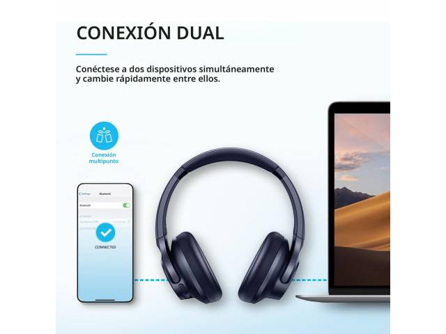 Autonomía hasta 60 horas. Conexión multipunto. Conexión 3.5mm y BT.