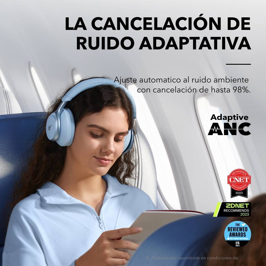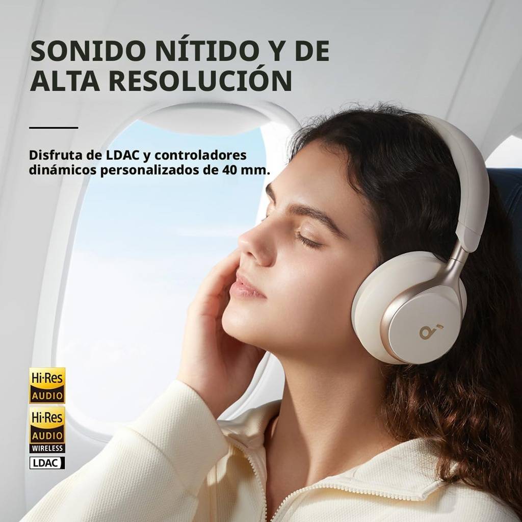 Los Soundcore Space One están diseñados para quienes buscan una experiencia de audio inmersiva, silenciosa y cómoda durante todo el día. Incorporan cancelación activa de ruido adaptativa (ANC) capaz de reducir hasta un 98 % del ruido ambiente, con una reducción de voz 2 veces más efectiva frente a modelos anteriores, ideal para viajes, trabajo o estudio. Sus drivers de 40 mm con soporte LDAC ofrecen audio inalámbrico de alta resolución, mientras que su autonomía de hasta 55 horas garantiza largas sesiones sin interrupciones. Todo esto en un diseño elegante, liviano y certificado para un uso confortable y sostenible.