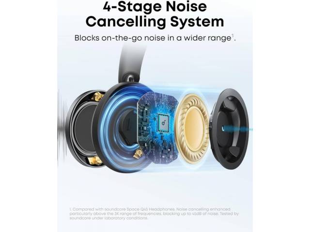 Los Soundcore Space One Pro combinan cancelación activa de ruido avanzada, sonido de alta fidelidad y un diseño plegable ultracompacto, ideales para viajes, trabajo y uso intensivo diario. Su innovadora estructura FlexiCurve reduce el tamaño hasta un 50%, facilitando el transporte sin sacrificar comodidad. Incorporan un exclusivo sistema de cancelación de ruido en 4 etapas, audio Hi-Res con LDAC y una autonomía sobresaliente de hasta 60 horas, posicionándolos como una opción premium para quienes buscan rendimiento, confort y portabilidad.