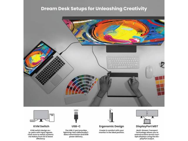 - Conectividad USB-C: Transferencia de video, datos y carga de hasta 65 W