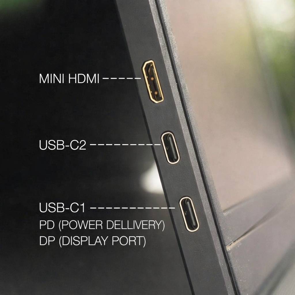 Puertos: 1 × Mini HDMI, 2 × USB-C (señal DisplayPort)