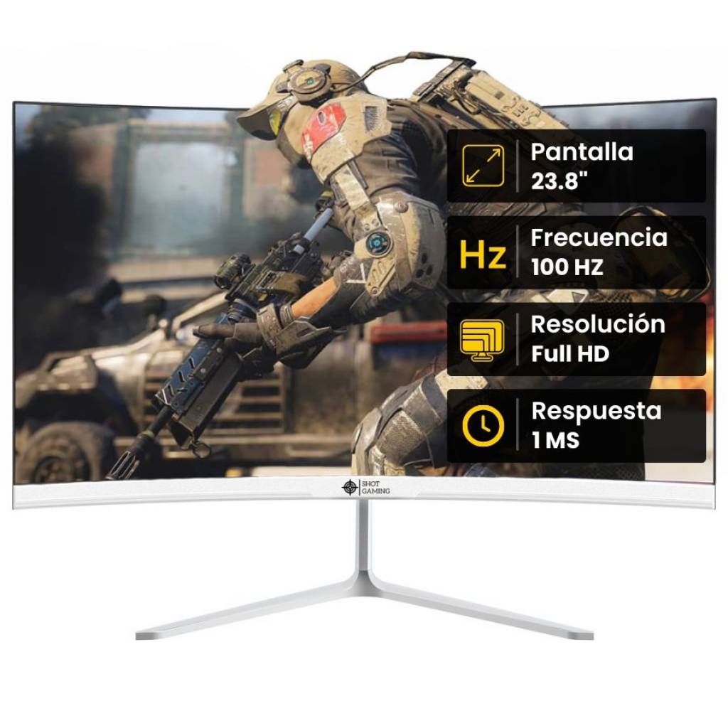 El Shot Gaming SG238C4 es un monitor curvo gamer de 23.8 pulgadas pensado para una experiencia de juego más inmersiva y fluida. Su panel Full HD con frecuencia de actualización de 100 Hz y tiempo de respuesta de 1 ms ofrece imágenes nítidas, movimientos suaves y menor desenfoque en escenas rápidas. Incluye conectividad DisplayPort y HDMI, compatibilidad VESA y un diseño elegante en color blanco, ideal tanto para gaming como para uso multimedia.