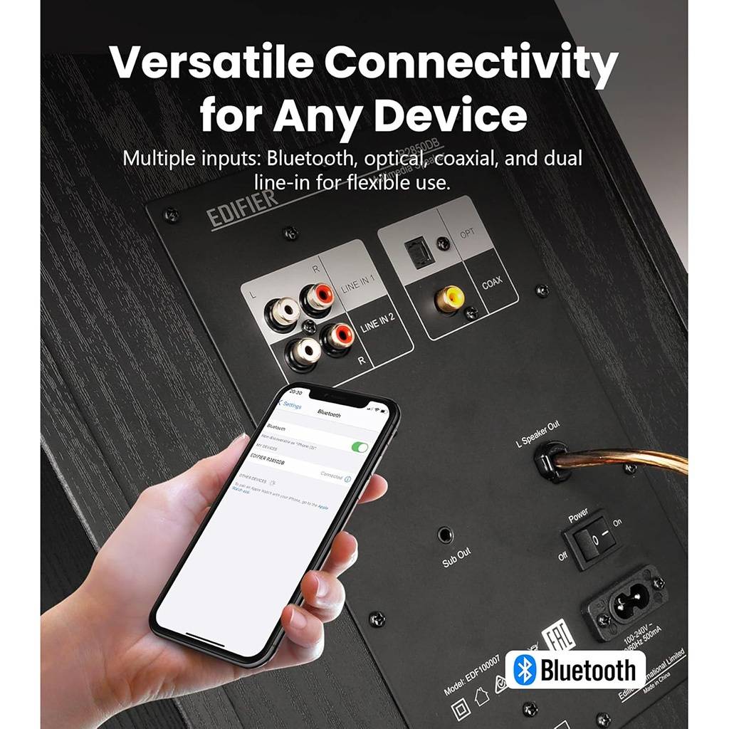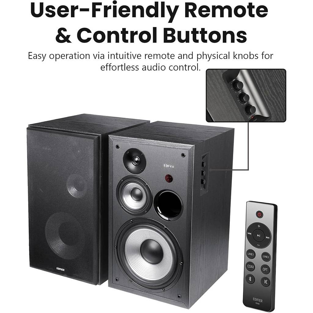 Los Edifier R2850DB ofrecen un audio 2.0 de alta potencia con excelente definición en agudos, medios y graves, ideal para estudios, home studios, salas grandes o usuarios que buscan un sonido profesional. Incorporan múltiples entradas, incluyendo óptica y coaxial, además de Bluetooth 5.1 para uso inalámbrico.