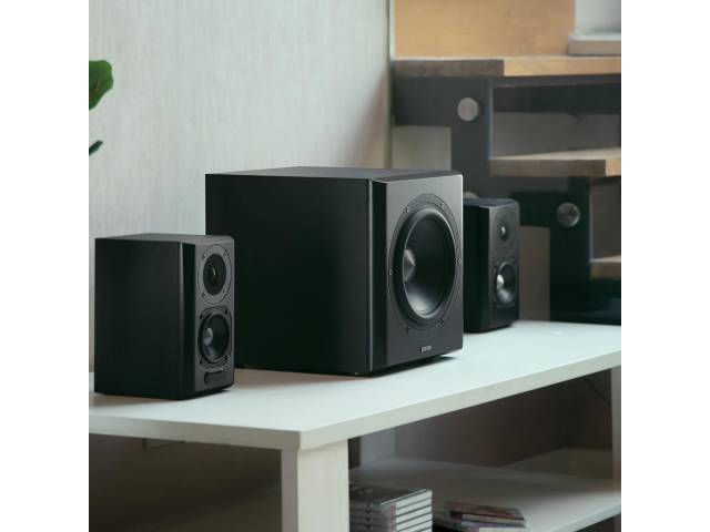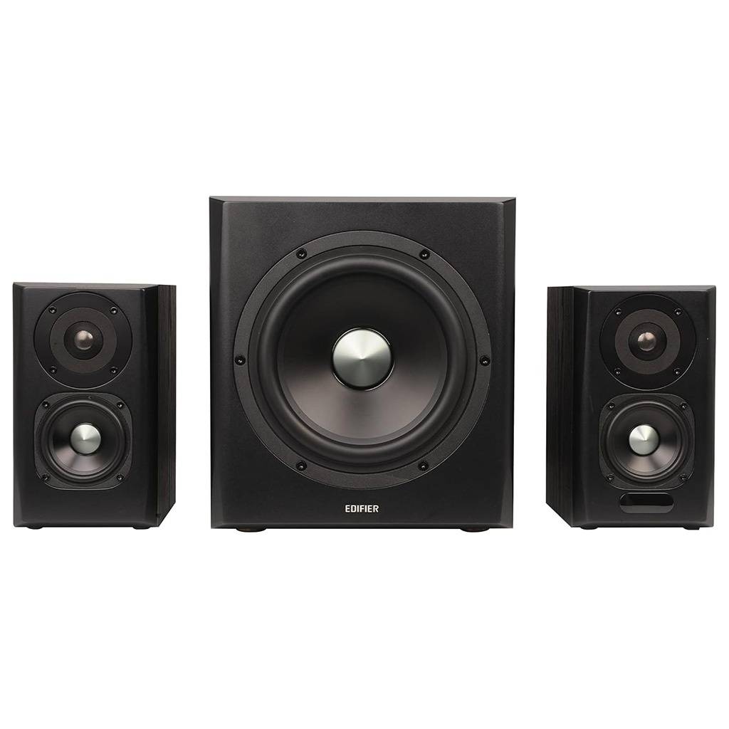 Los Edifier S351DB son un sistema de parlantes 2.1 de alto rendimiento, construidos con gabinete de madera para minimizar resonancias y ofrecer un sonido más cálido, preciso y potente. Combinan un subwoofer robusto con satélites de rango completo, brindando una experiencia ideal para música, cine y gaming, con conectividad moderna y audio digital de alta calidad.