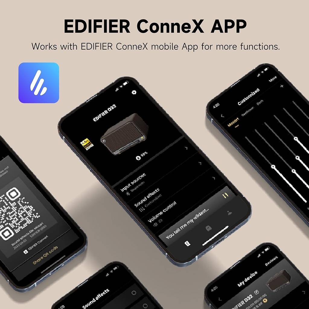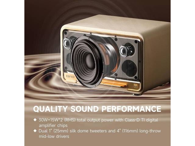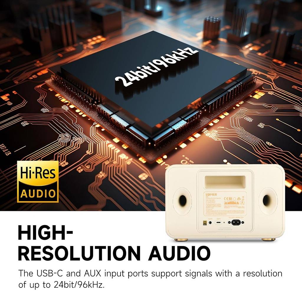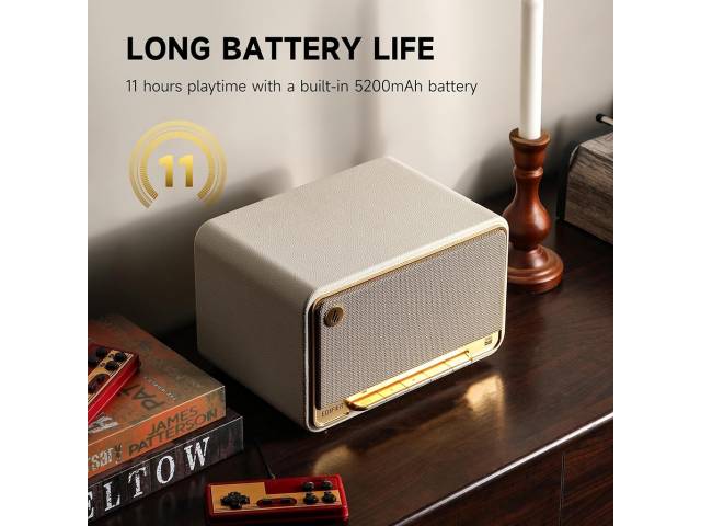 El Edifier D32 Retro combina un diseño clásico con tecnología moderna para ofrecer un sonido potente y cálido. Su gabinete de madera real, la rejilla metálica trenzada y su batería de larga duración lo convierten en un parlante portátil premium ideal para música en alta fidelidad dentro y fuera del hogar.