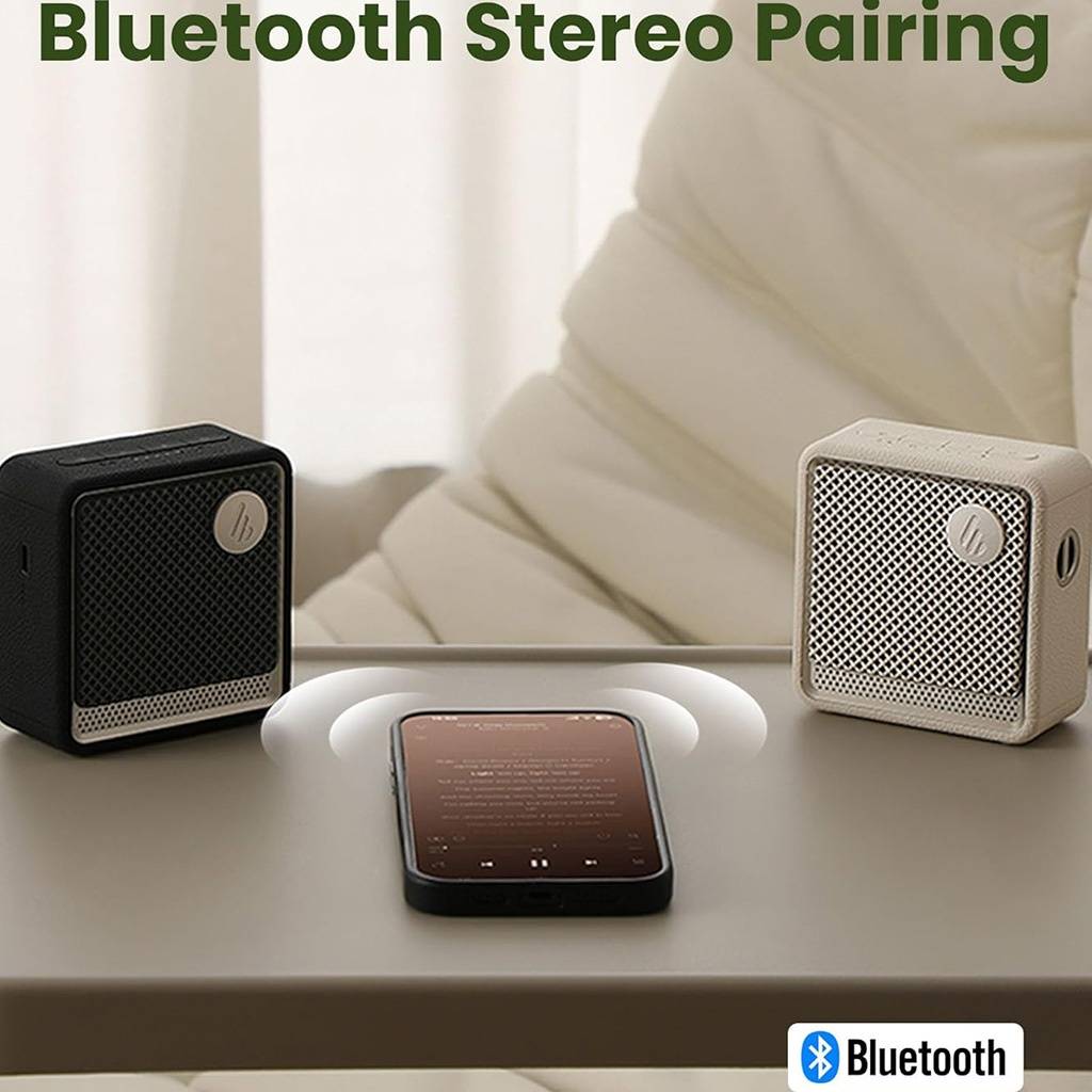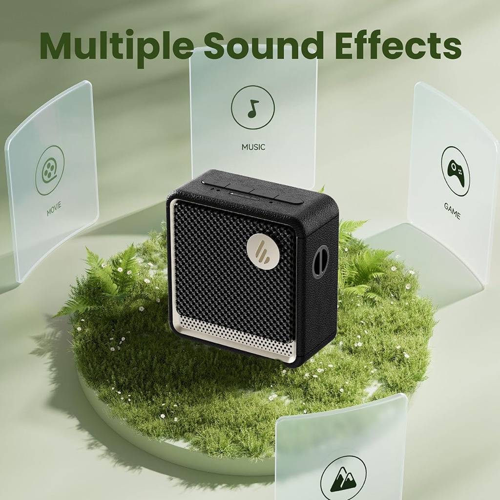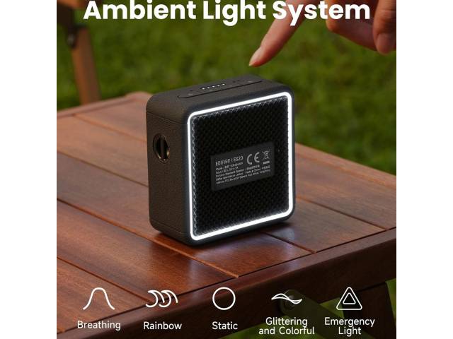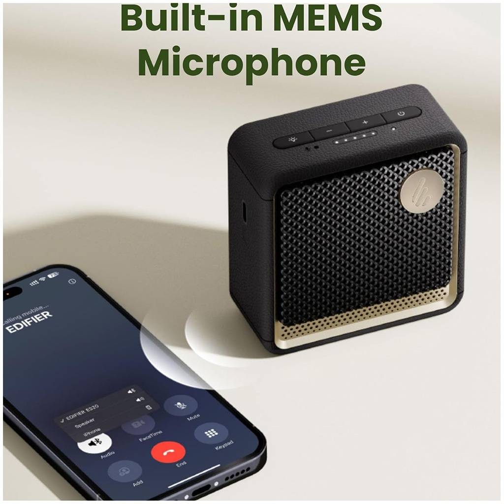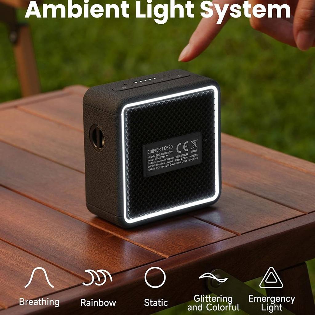 El Edifier ES20 es un parlante portátil compacto con diseño moderno, efectos de iluminación ambiental y excelente autonomía. Ideal para uso diario, reuniones pequeñas y llamadas gracias a su micrófono integrado.