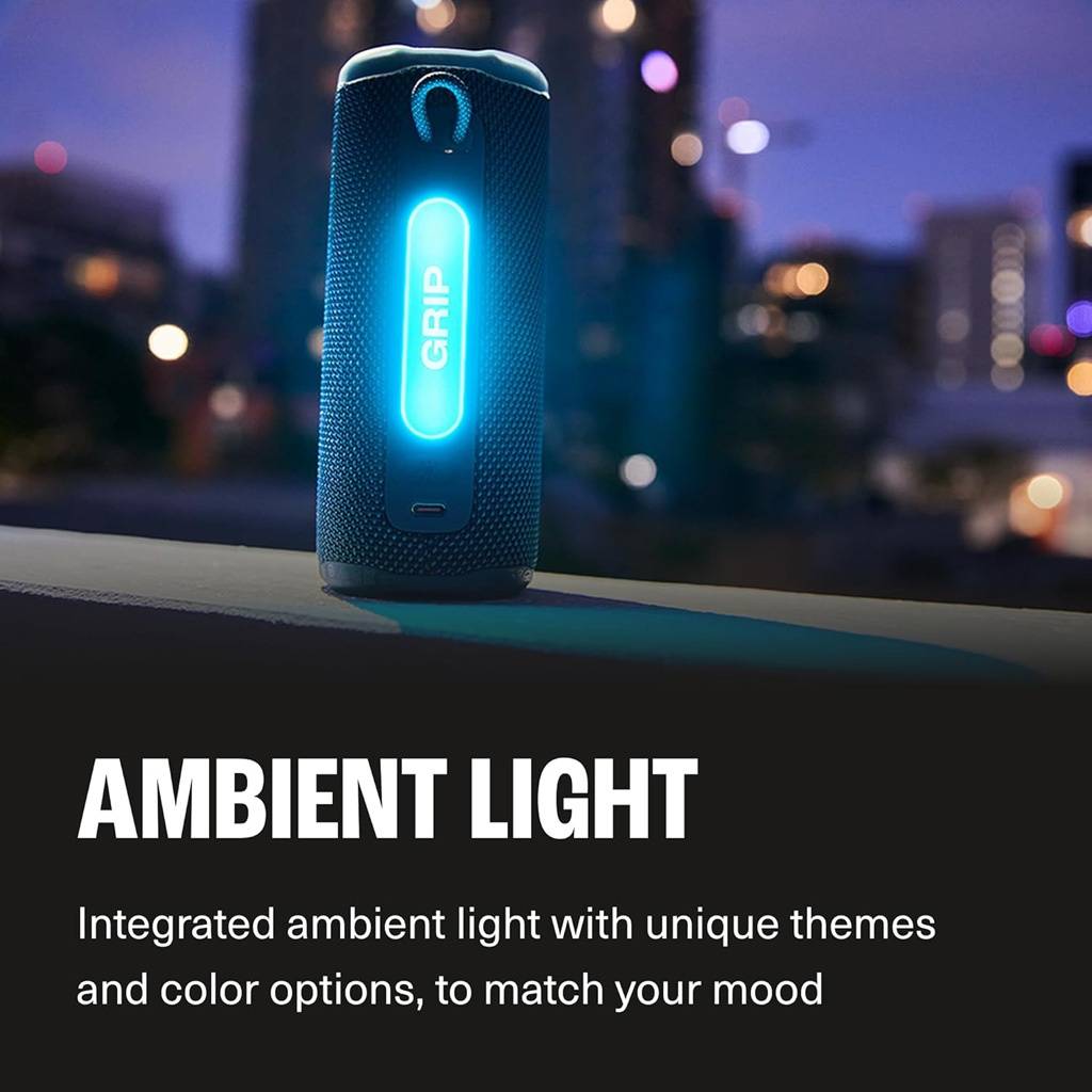 El JBL Grip es un parlante compacto, resistente y potente, diseñado para acompañarte en cualquier actividad gracias a su sonido JBL Pro, su construcción duradera y su batería optimizada. Incorpora AI Sound Boost, que analiza la música en tiempo real para ofrecer más potencia y menor distorsión. Brinda hasta 12 horas de reproducción, ampliables a 14 horas con Playtime Boost, y su luz ambiental trasera permite crear el ambiente perfecto. Con certificación IP68, es resistente al agua, al polvo y a las caídas. Además, es compatible con Auracast, incluye integración con la app JBL Portable y está fabricado con materiales reciclados.
