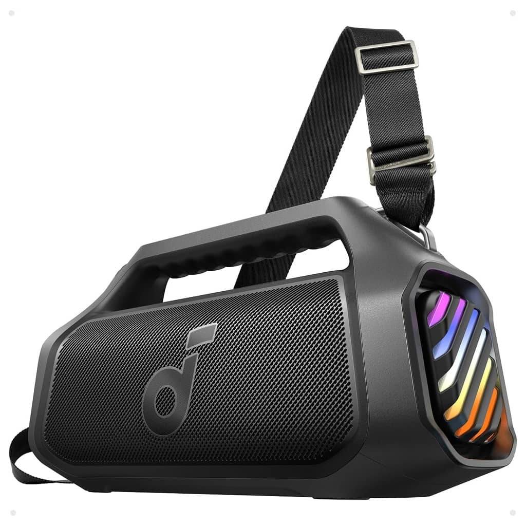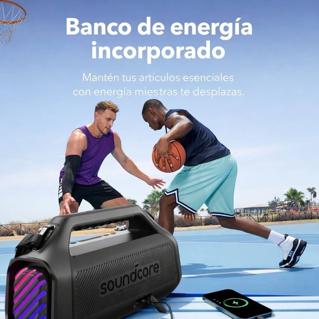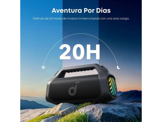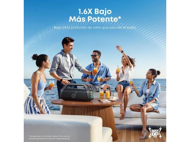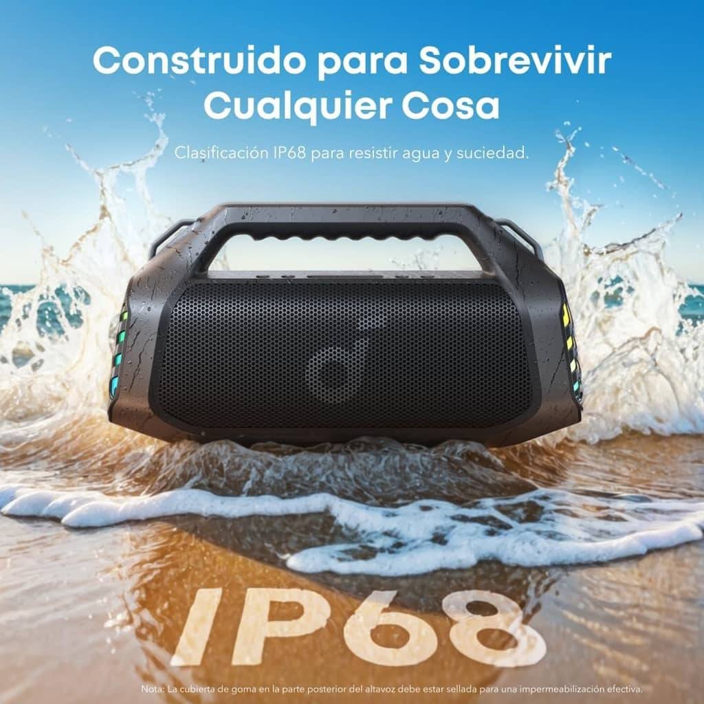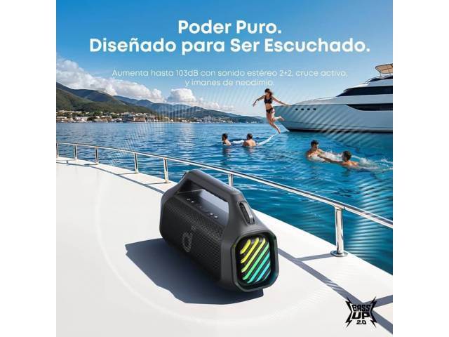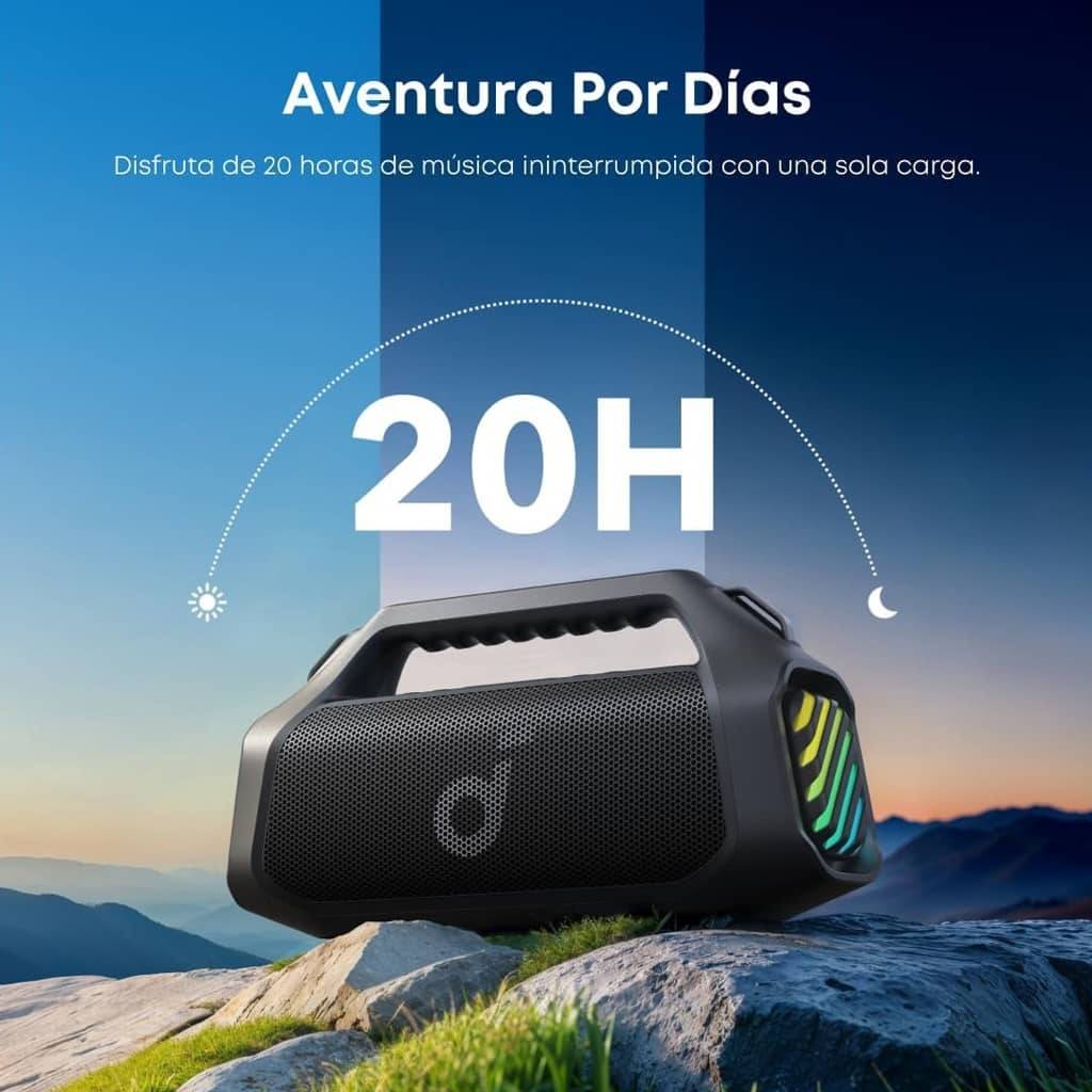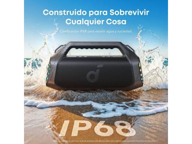 El Soundcore Boom 2 Pro es un parlante portátil de alto rendimiento diseñado para llevar la música a cualquier entorno, incluso los más exigentes. Ofrece hasta 140 W de potencia máxima, un sistema de sonido estéreo avanzado con graves profundos gracias a BassUp 2.0, y una construcción ultra resistente con certificación IP68, capaz de soportar agua, polvo, aceite e incluso flotar. Su batería brinda hasta 20 horas de reproducción, incorpora power bank para cargar otros dispositivos y permite crear un sistema de fiesta masivo mediante PartyCast 2.0.