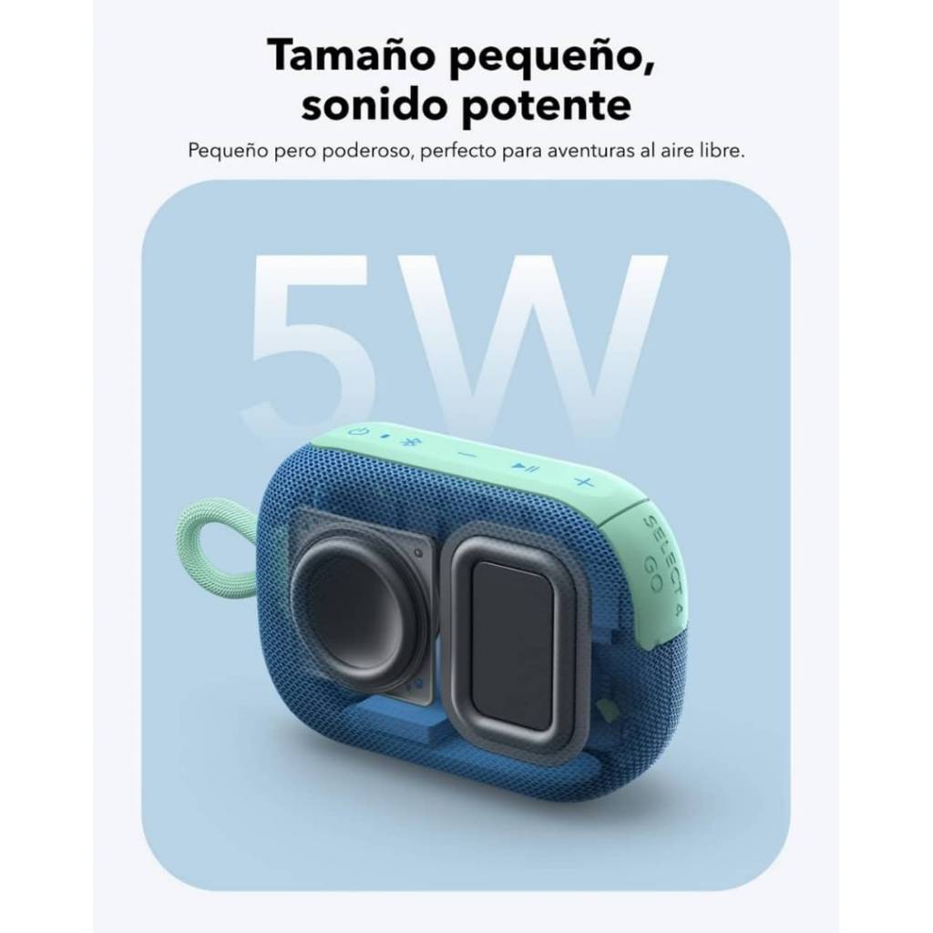 El Soundcore Select 4 Go es un parlante Bluetooth compacto y resistente, ideal para llevar a cualquier lugar. A pesar de su tamaño reducido, ofrece un sonido claro y potente de 5 W, una autonomía de hasta 20 horas y una protección IP67 que lo hace resistente al polvo y al agua, incluso flotando en el agua. Su diseño liviano con correa integrada y la posibilidad de emparejar dos unidades en modo estéreo True Wireless lo convierten en un compañero perfecto para actividades al aire libre, viajes y reuniones.