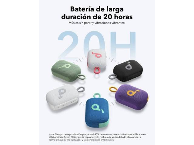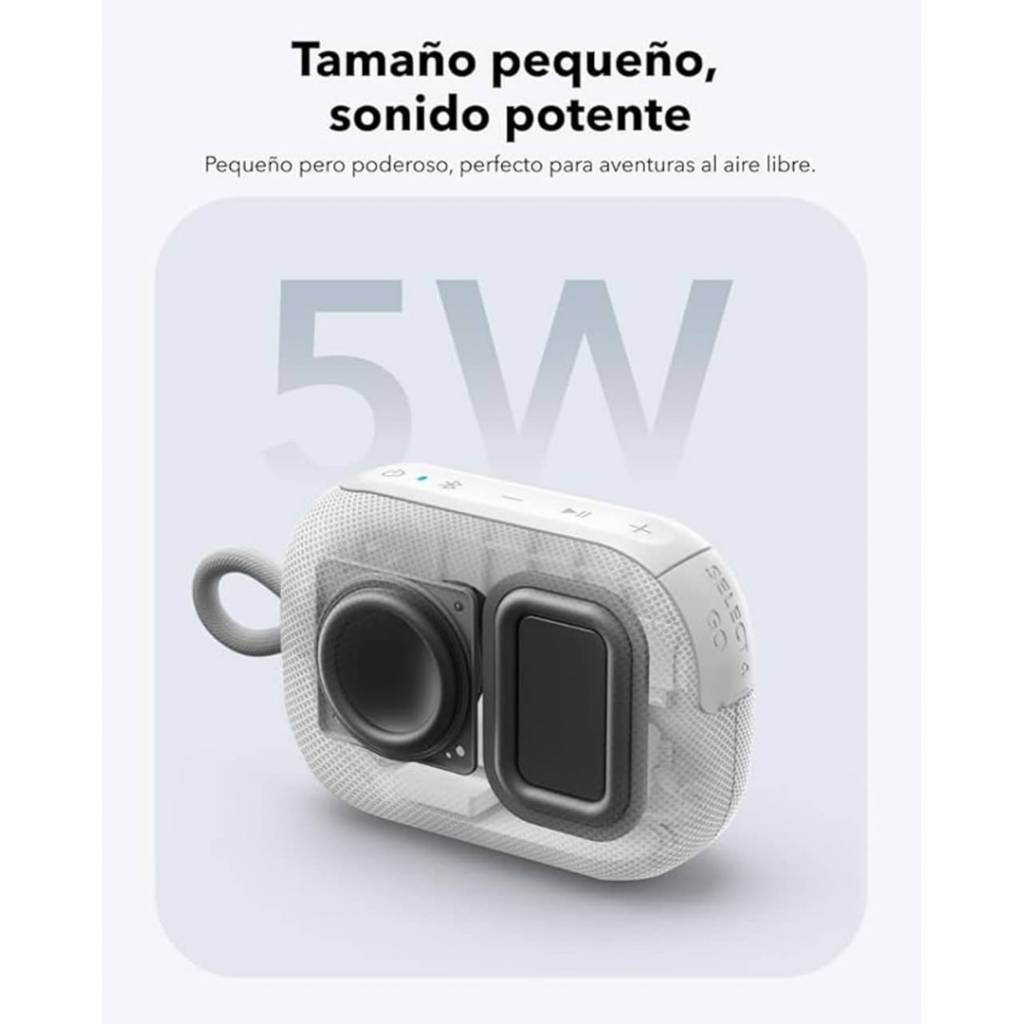 El Soundcore Select 4 Go es un parlante Bluetooth compacto y resistente, ideal para llevar a cualquier lugar. A pesar de su tamaño reducido, ofrece un sonido claro y potente de 5 W, una autonomía de hasta 20 horas y una protección IP67 que lo hace resistente al polvo y al agua, incluso flotando en el agua. Su diseño liviano con correa integrada y la posibilidad de emparejar dos unidades en modo estéreo True Wireless lo convierten en un compañero perfecto para actividades al aire libre, viajes y reuniones.