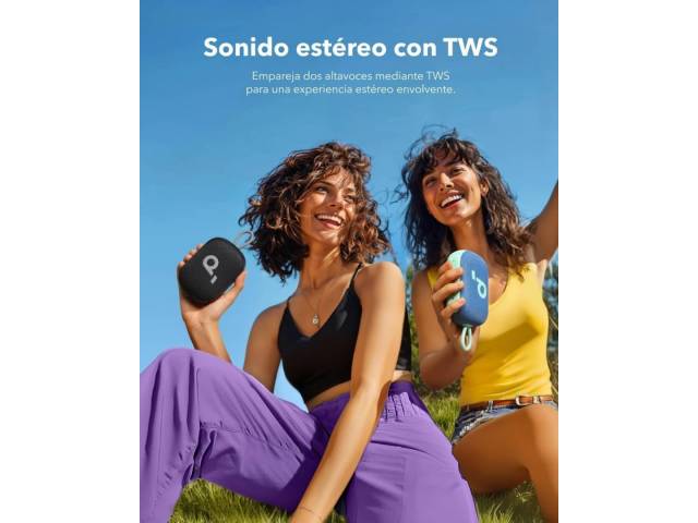 El Soundcore Select 4 Go es un parlante Bluetooth compacto y resistente, ideal para llevar a cualquier lugar. A pesar de su tamaño reducido, ofrece un sonido claro y potente de 5 W, una autonomía de hasta 20 horas y una protección IP67 que lo hace resistente al polvo y al agua, incluso flotando en el agua. Su diseño liviano con correa integrada y la posibilidad de emparejar dos unidades en modo estéreo True Wireless lo convierten en un compañero perfecto para actividades al aire libre, viajes y reuniones.