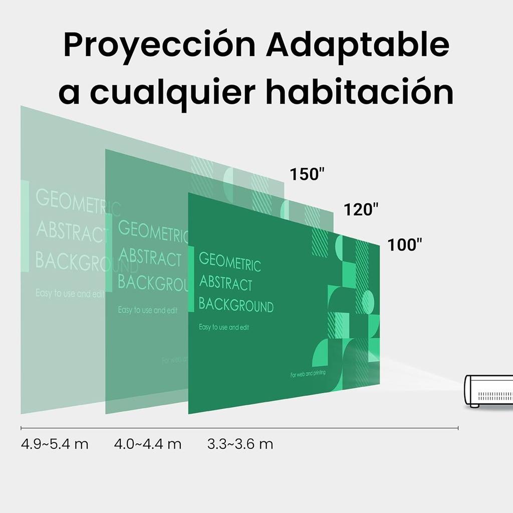 Chromecast incluido. Hasta 120". Dolby Audio 8W. Conexiones USB, HDMI, Aux, USB-C. Batería con autonomía de hasta 2.5 horas. Tecnología DLP / LED. Resolución FHD.