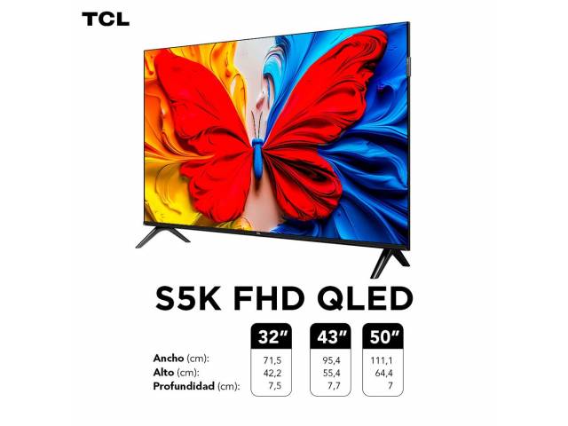 El televisor TCL 32" S5K ofrece una experiencia visual inmersiva gracias a su panel QLED Full HD y tecnología HDR10, que optimiza el contraste y resalta cada detalle. Su sistema Google TV permite acceder fácilmente a tus aplicaciones, series y películas favoritas, mientras que el diseño sin bisel metálico realza el estilo de cualquier ambiente.