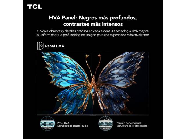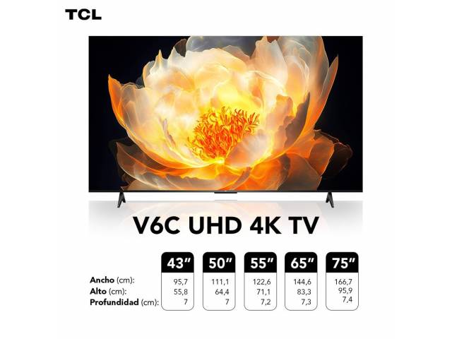 El televisor TCL 55" V6C ofrece una experiencia visual inmersiva gracias a su panel LED 4K UHD y tecnología HDR10+, que optimiza el contraste y resalta cada detalle. Su sistema Google TV permite acceder fácilmente a tus aplicaciones, series y películas favoritas, mientras que el diseño sin bisel metálico realza el estilo de cualquier ambiente.