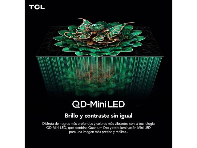 El televisor TCL 65" C7K es un Smart TV Mini-LED QLED 4K UHD de gran formato con especificaciones de alta gama, diseñado para salas amplias, cine en casa o gaming premium.