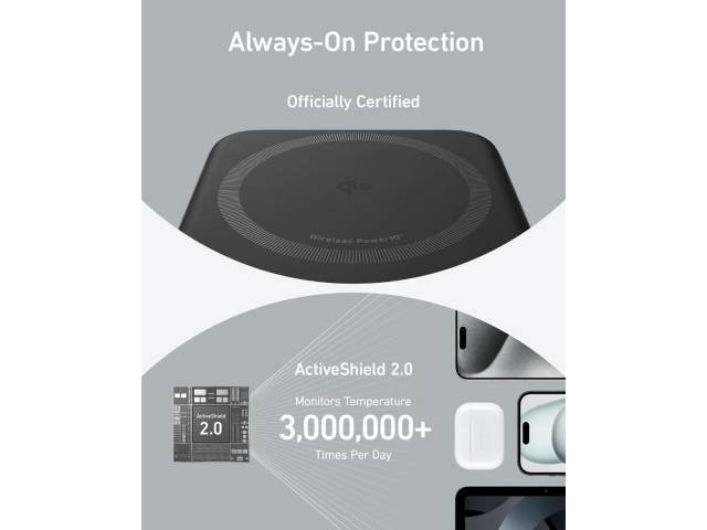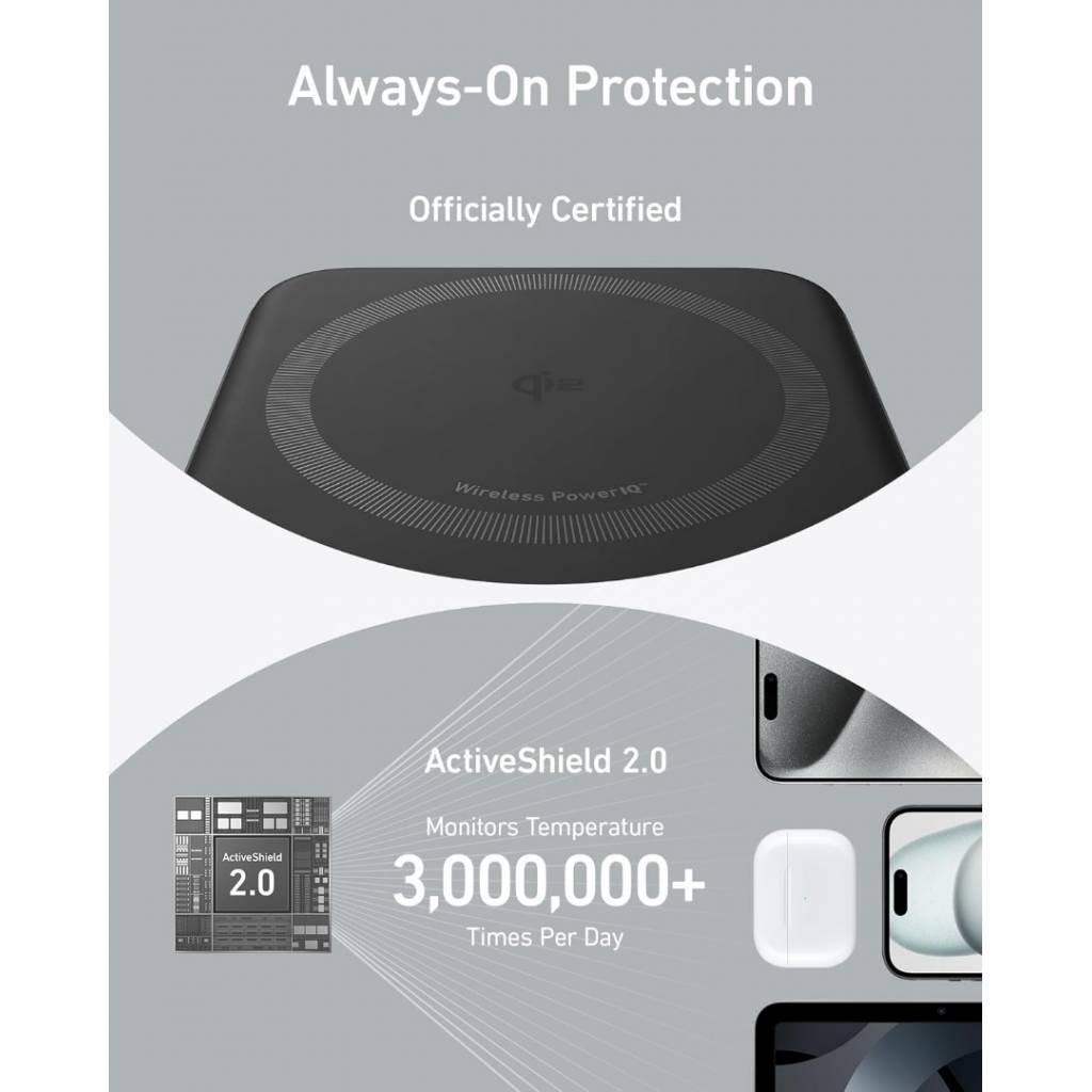 Compatible con MagSafe. Certificado Qi2 de 15W de carga ultrarrápida.