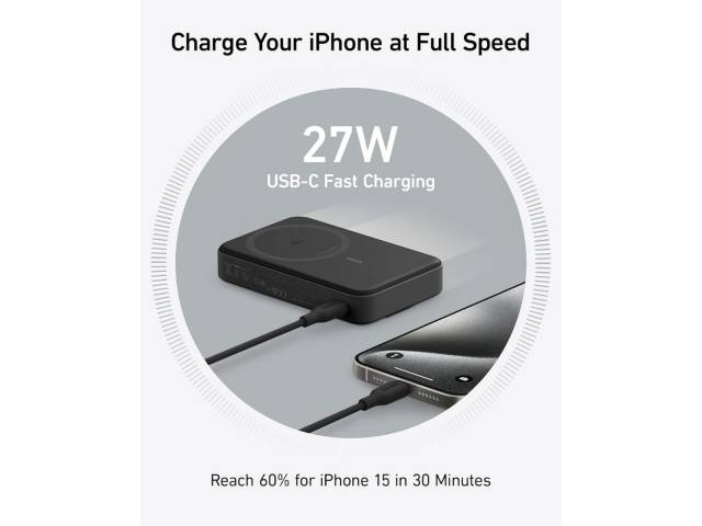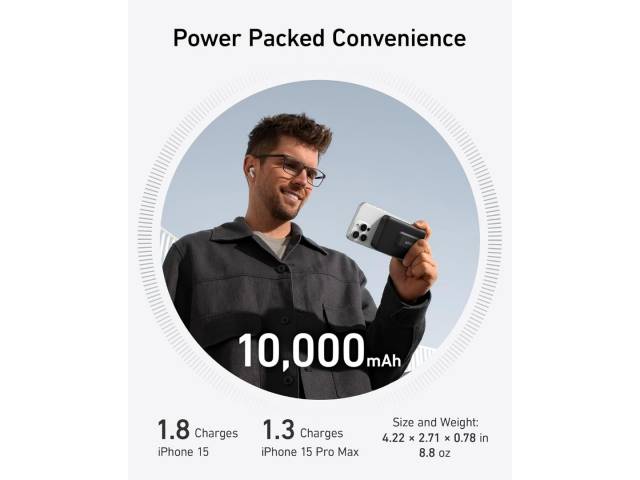 Batería portátil magnética de alta capacidad diseñada para usuarios de iPhone compatibles con MagSafe. Ofrece carga inalámbrica estable y alineación automática gracias a su sistema magnético de precisión, combinando portabilidad y potencia para el uso diario.