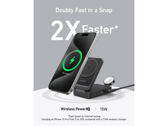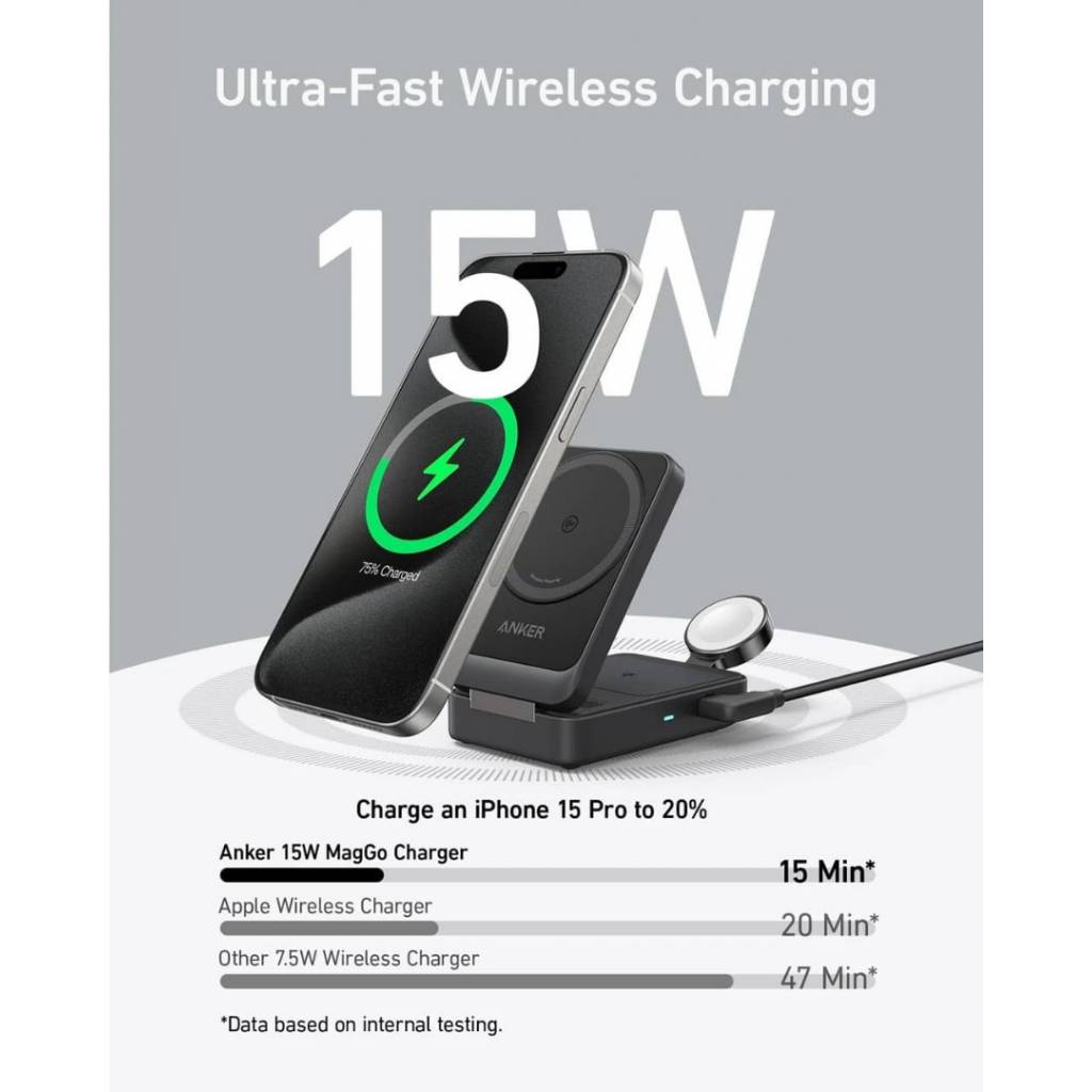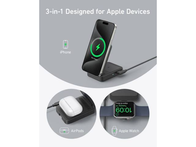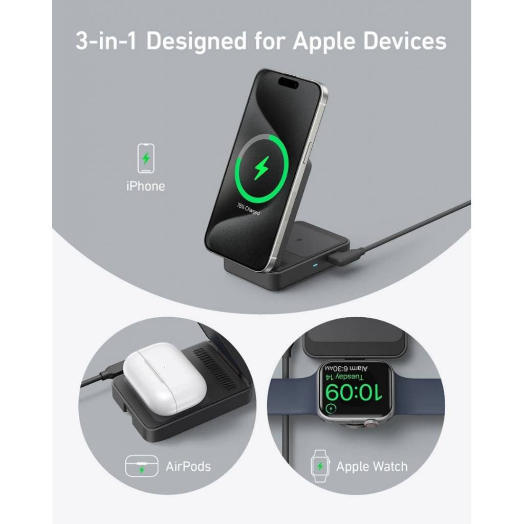 Estación de carga inalámbrica Anker MagGo 3 en 1 (plegable)