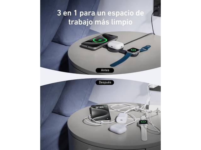 - Carga simultánea para iPhone, Apple Watch y AirPods