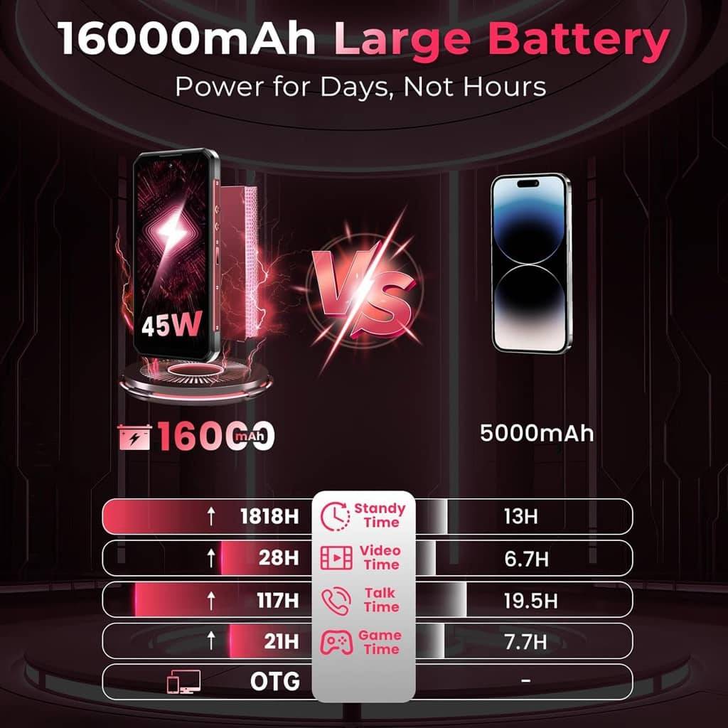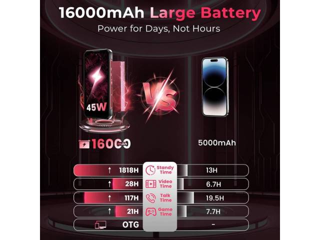 - Batería 16000 mAh: Autonomía extrema con carga rápida de 45 W.