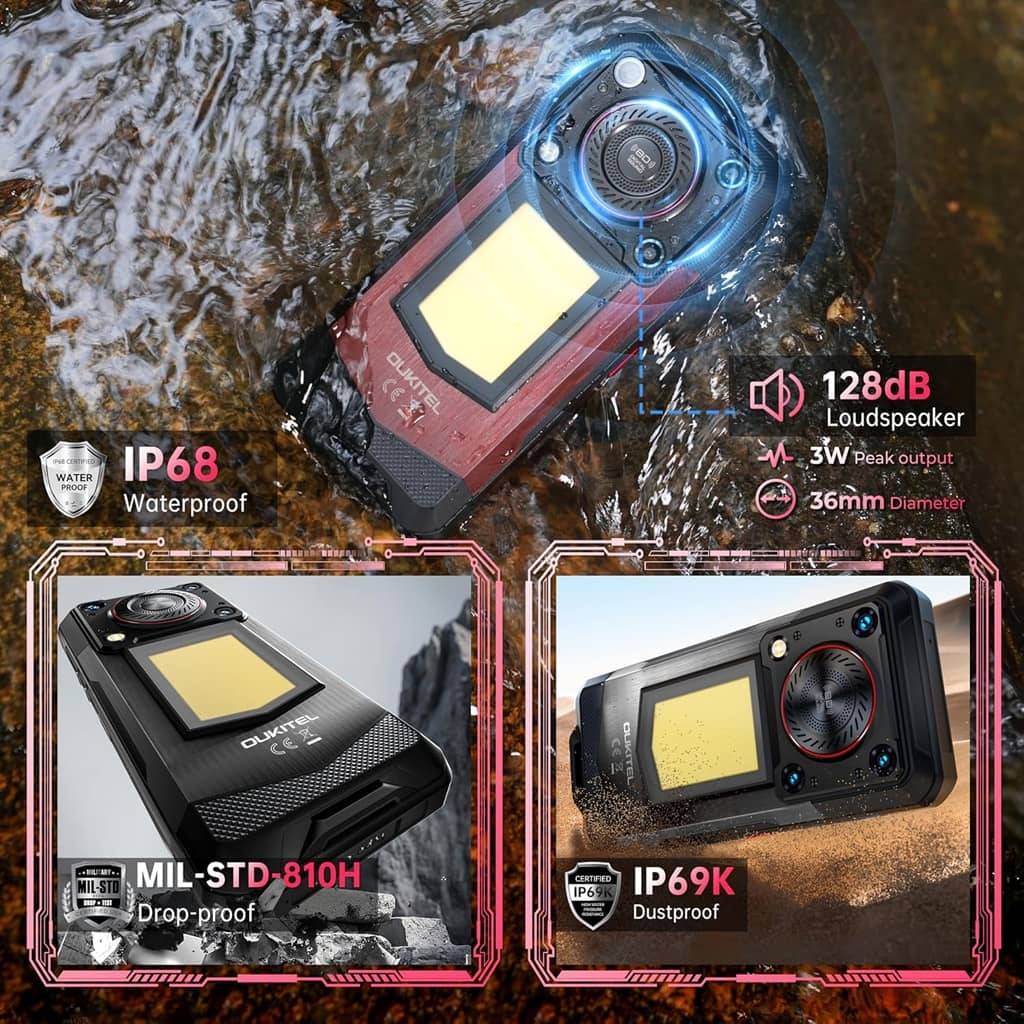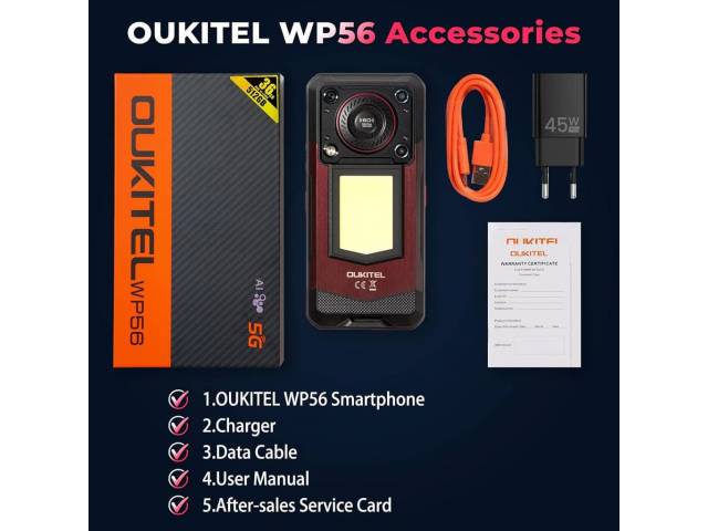 El Oukitel WP56 5G es un smartphone rugerizado de alto rendimiento diseñado para soportar condiciones extremas sin sacrificar potencia ni autonomía. Equipado con el procesador Dimensity 7050, una pantalla FHD de 6.8" con 550 nits y una gigantesca batería de 16000 mAh, ofrece un rendimiento fluido y uso prolongado incluso en jornadas intensas. Sus 12 GB de RAM ampliables a 36 GB permiten ejecutar múltiples apps y juegos sin interrupciones, mientras que sus cámaras de 32 MP y 108 MP brindan excelente calidad fotográfica. Su resistencia IP68, IP69K y certificación MIL-STD-810H lo convierten en un equipo ideal para trabajo, aventura y uso exigente. Incluye 5G, NFC, desbloqueo por huella, luz camping y parlante de 3 W.