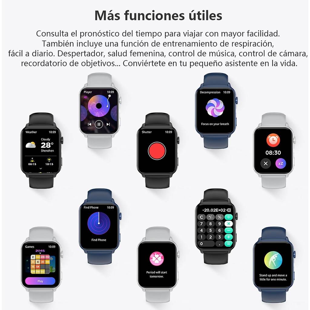 El Blackview R30 Max es un smartwatch completo y funcional, ideal para quienes buscan llamadas Bluetooth, monitoreo de salud y gran autonomía en un diseño cómodo y liviano. Incorpora una amplia pantalla táctil de 1.91", linterna LED lateral para mayor utilidad diaria y asistente de voz con IA, convirtiéndose en un aliado práctico tanto para el uso cotidiano como para la actividad física, con una batería que permite varios días de uso sin recargas constantes.