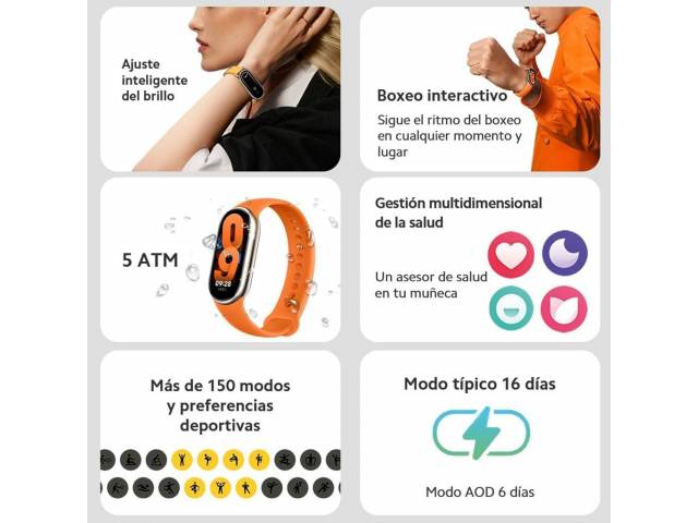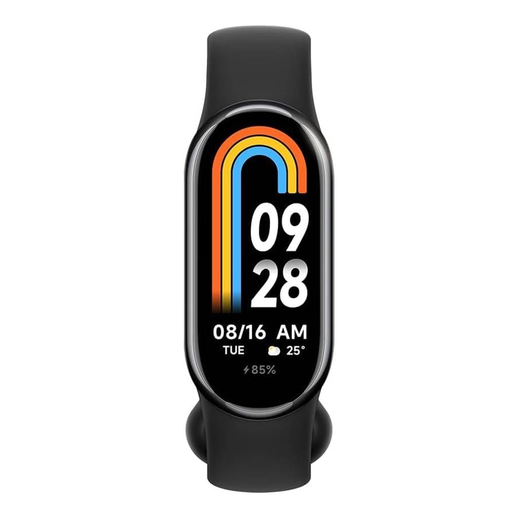 La Xiaomi Mi Band 8 en color negro combina un diseño elegante con un marco metálico y funciones avanzadas de salud, deporte y personalización. Ofrece hasta 16 días de batería, nuevo modo Pebble, esferas dinámicas y una experiencia cómoda en la muñeca gracias a su construcción ligera.