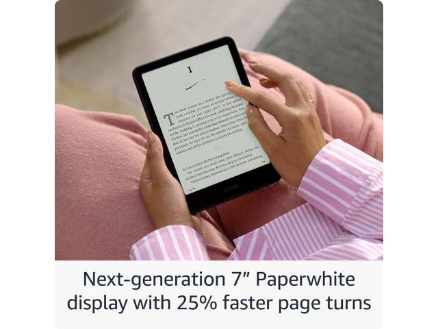 El Kindle Paperwhite 2024 de 12ª generación ofrece una experiencia de lectura superior con pantalla de tinta electrónica de 7 pulgadas y 300 ppp, ideal para disfrutar textos nítidos en cualquier condición de luz gracias a su iluminación ajustable de 17 LEDs. Su diseño es liviano, resistente al agua IPX8 y cuenta con una batería de larga duración que permite semanas de uso sin recarga.