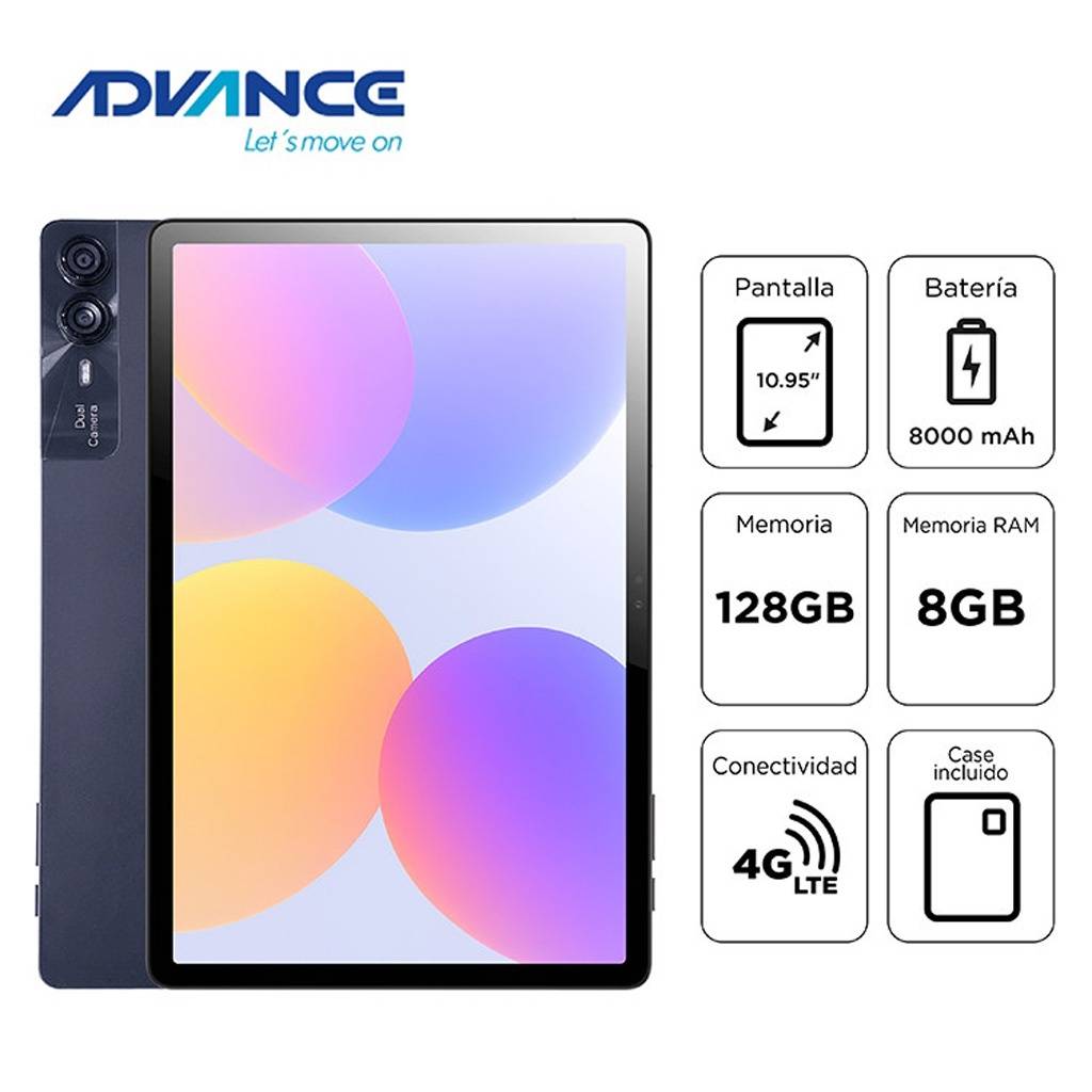El Advance NovaPad NP6070 es una tablet versátil y moderna diseñada para entretenimiento, estudio, trabajo ligero y uso diario. Equipada con Android 14, una pantalla FHD IPS de 10.95", 8 GB de RAM y 128 GB de almacenamiento interno, ofrece una experiencia fluida para multitarea y aplicaciones populares. Su conectividad 4G LTE permite usarla en cualquier lugar, mientras que su batería de 8000 mAh garantiza largas horas de uso. Ideal para quienes buscan un dispositivo equilibrado, portable y con buena calidad de imagen.