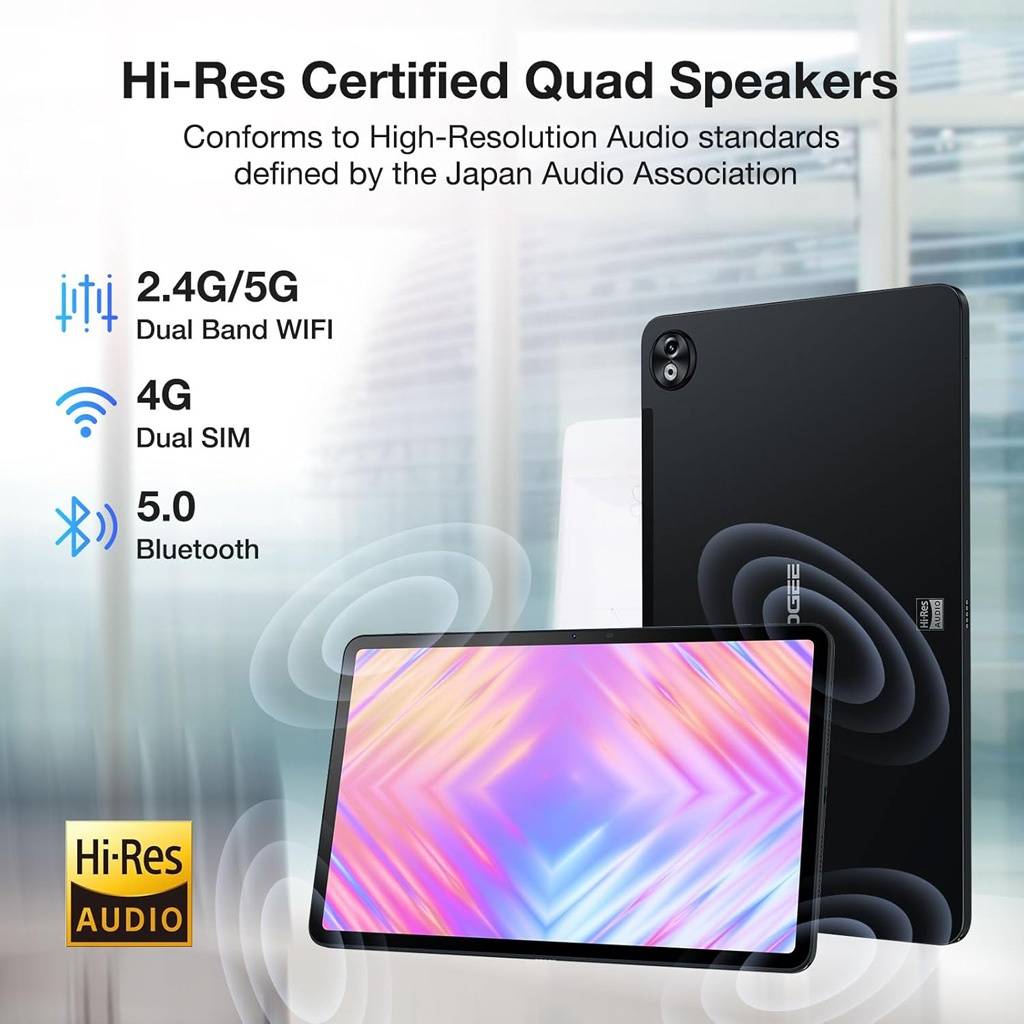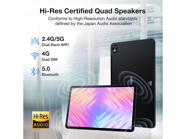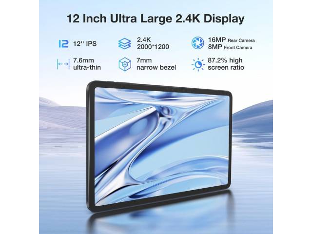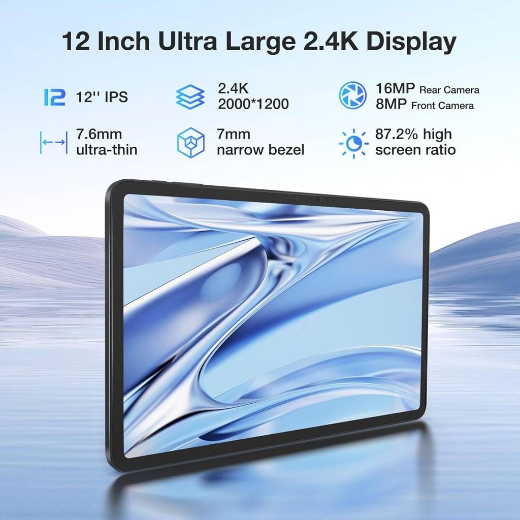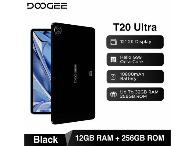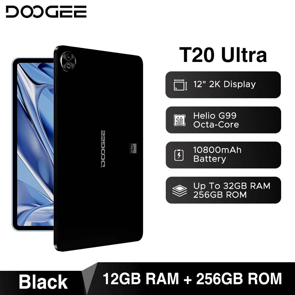 La DOOGEE T20 Ultra es una tablet premium de 12 pulgadas diseñada para ofrecer potencia, fluidez y una experiencia visual y sonora envolvente. Equipada con pantalla BOE 2.4K certificada para el cuidado ocular y diseño metálico ultrafino de 7.6 mm, brinda una experiencia inmersiva ideal para trabajo, estudio o entretenimiento. Su procesador MediaTek Helio G99 de ocho núcleos, combinado con 32 GB de RAM (12 GB físicos + 20 GB virtuales) y 256 GB de almacenamiento interno ampliables hasta 2 TB, garantiza un rendimiento sobresaliente. Incorpora una batería de 10800 mAh para más de 12 horas de uso, cámaras de 16 MP y 8 MP, cuatro altavoces estéreo Hi-Res con sistema Smart PA y conectividad completa con 4G Dual SIM, WiFi 5G, GPS y Android actualizado, ofreciendo equilibrio entre potencia, diseño y funcionalidad.