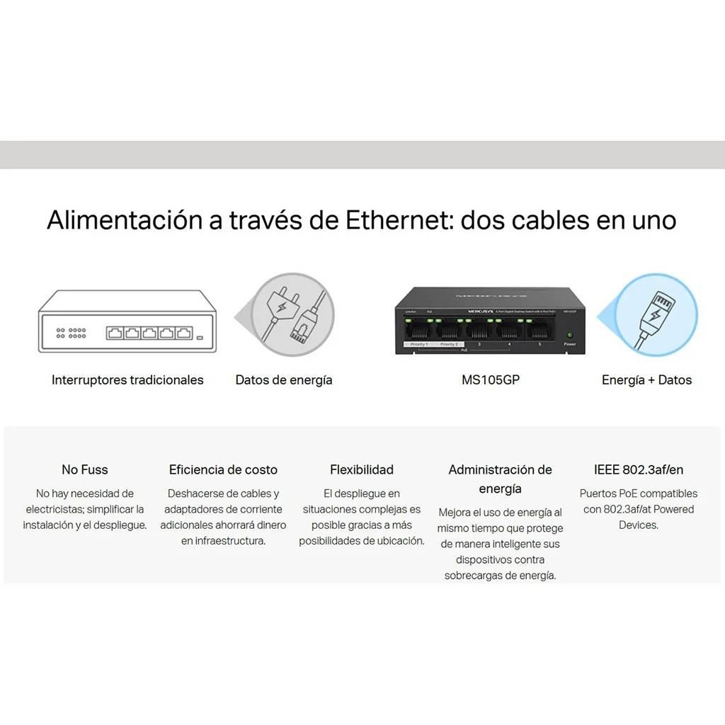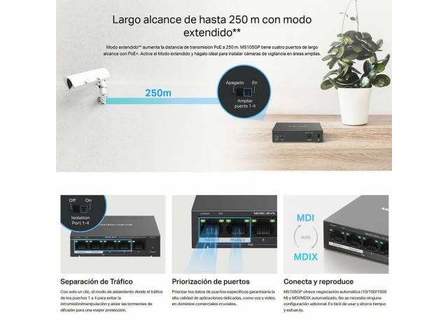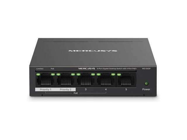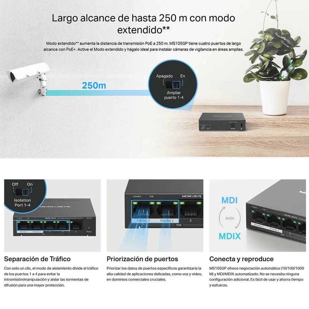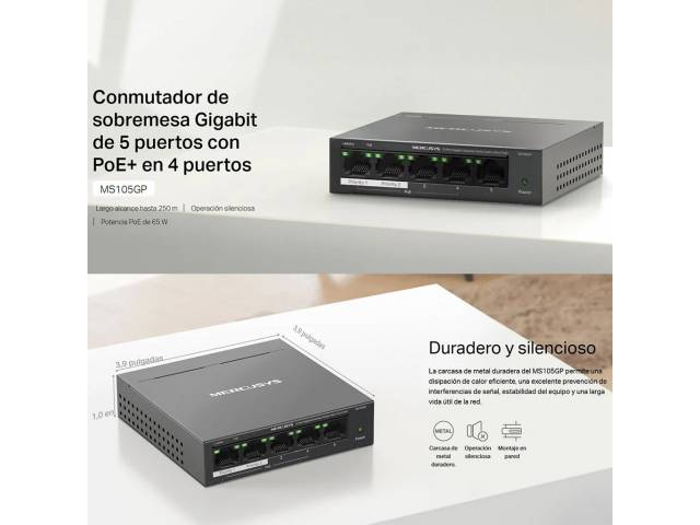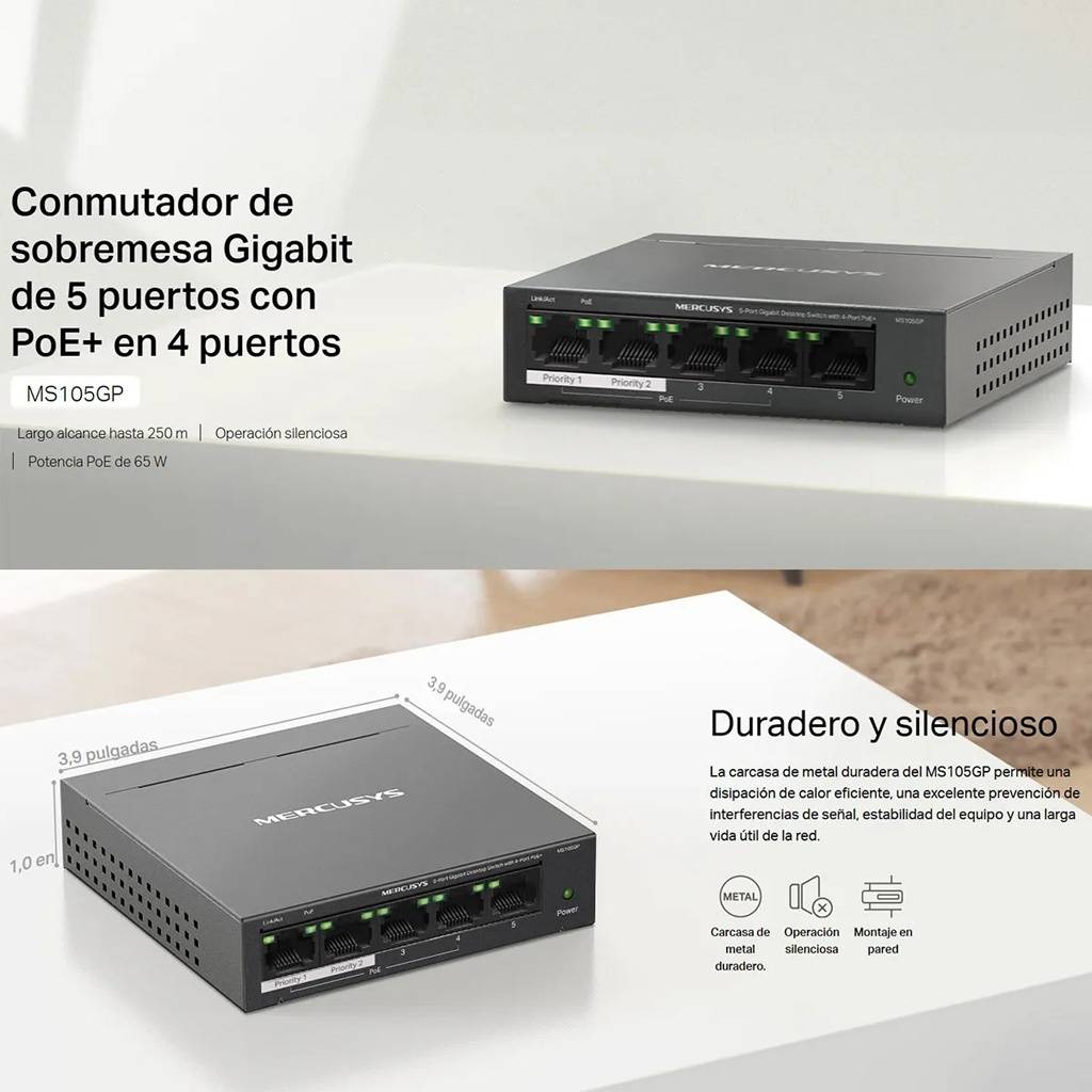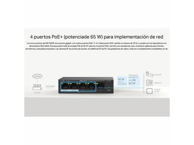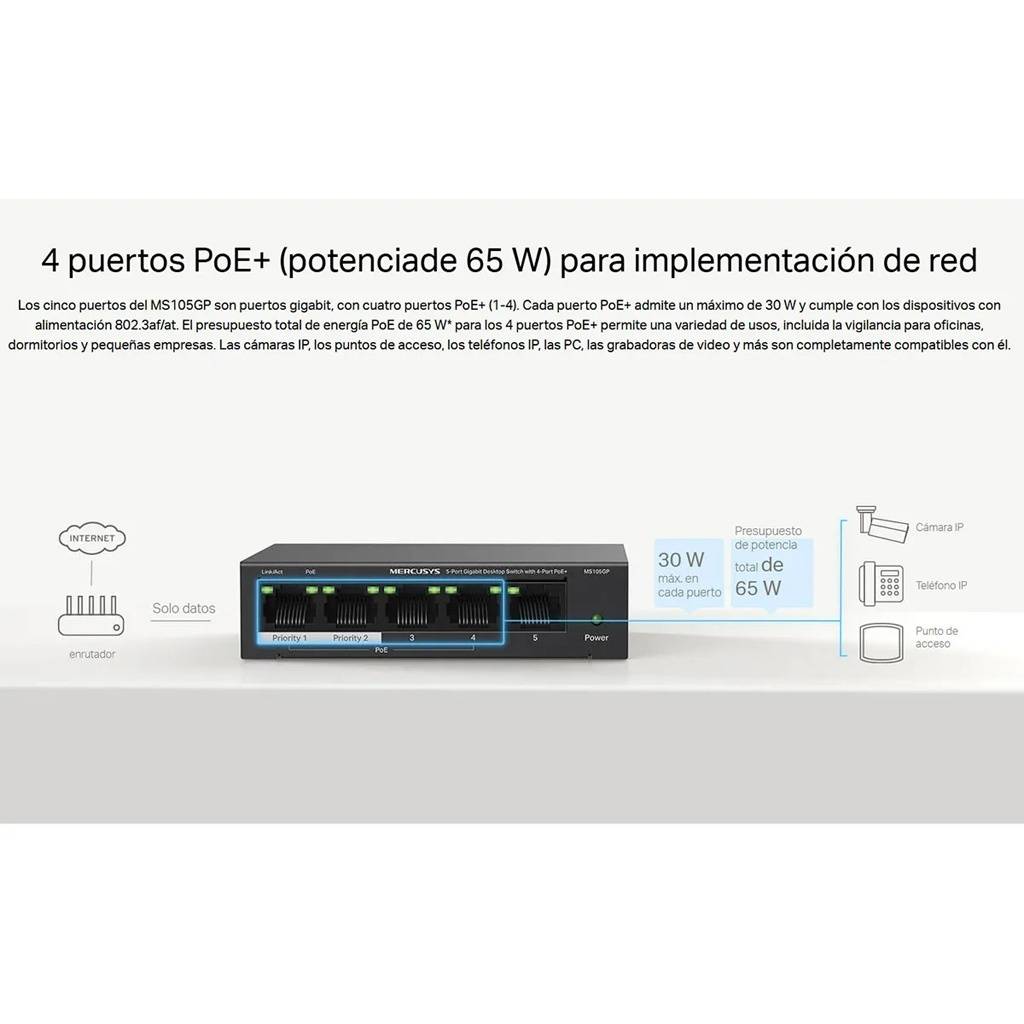 - Switch de escritorio de 5 puertos con PoE+ de 4 puertos (MS105GP)