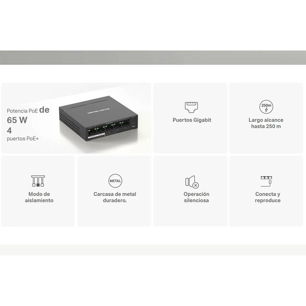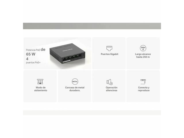 Tipo: Switch 5 puertos 10/100/1000Mbps 4 Puertos PoE