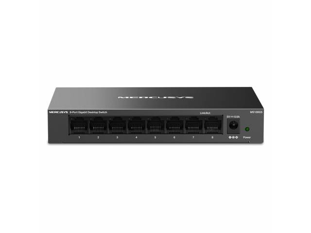8 puertos 10/100 RJ45. No administrable. Carcasa plástica.