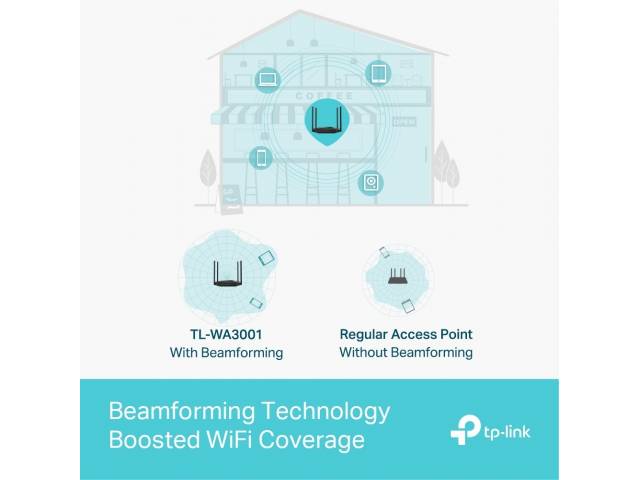 - Cobertura mejorada: Cuatro antenas fijas equipadas con tecnología Beamforming extienden y concentran las señales Wi-Fi.
