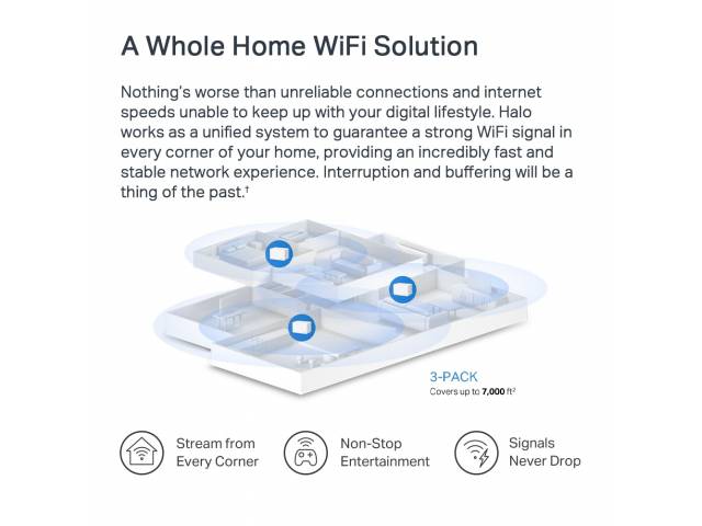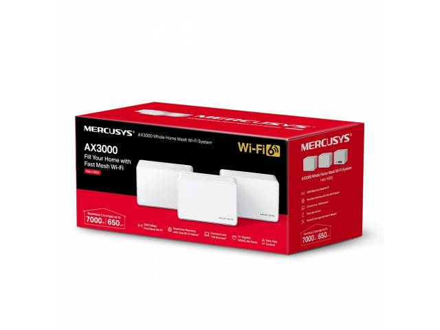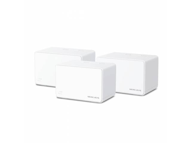 El sistema Mesh WiFi 6 MERCUSYS Halo H80X en pack de 3 unidades está diseñado para cubrir grandes espacios con conectividad estable, sin zonas muertas y con una única red unificada. Cada nodo ofrece velocidades combinadas de AX3000 (2402 Mbps en 5 GHz + 574 Mbps en 2,4 GHz), soporte para más de 150 dispositivos y puertos Gigabit en cada unidad. Trabajan en conjunto con roaming automático, ideal para hogares grandes, oficinas o entornos con alta demanda de red.