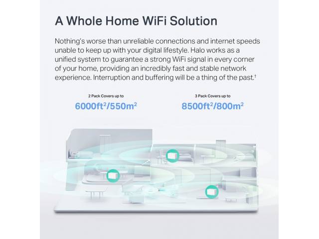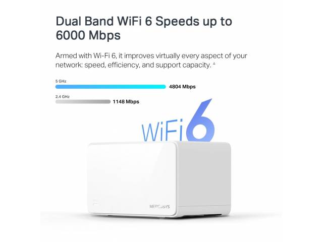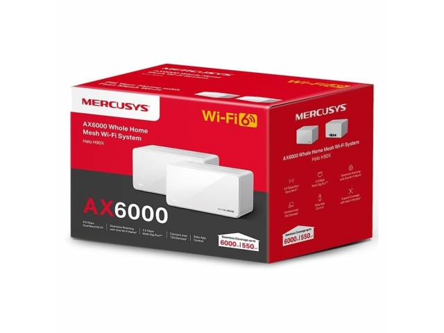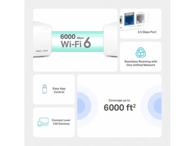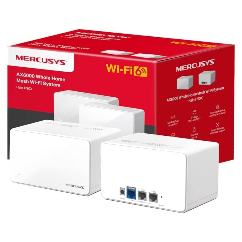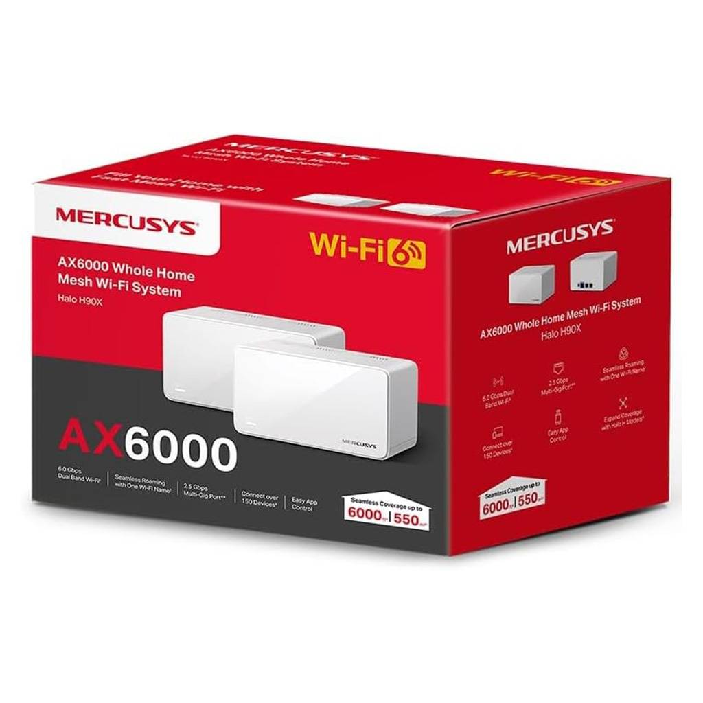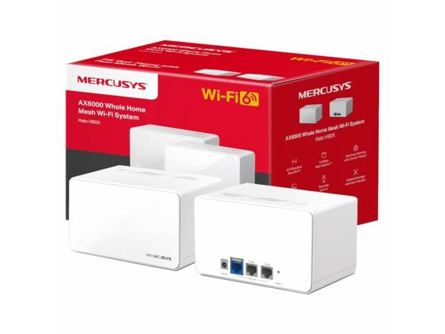 El sistema Mesh WiFi 6 MERCUSYS Halo H90X en versión de 2 unidades está diseñado para ofrecer cobertura total y rendimiento superior en hogares o ambientes exigentes. Cada nodo entrega velocidades combinadas de hasta AX6000 (4804 Mbps en 5 GHz + 1148 Mbps en 2,4 GHz), y al trabajar en conjunto bajo una sola red con roaming automático, garantiza conexión continua sin interrupciones. Con soporte para más de 150 dispositivos simultáneos, puertos Multi-Gig y gestión desde app móvil, es una solución ideal para usuarios con altas demandas de red.