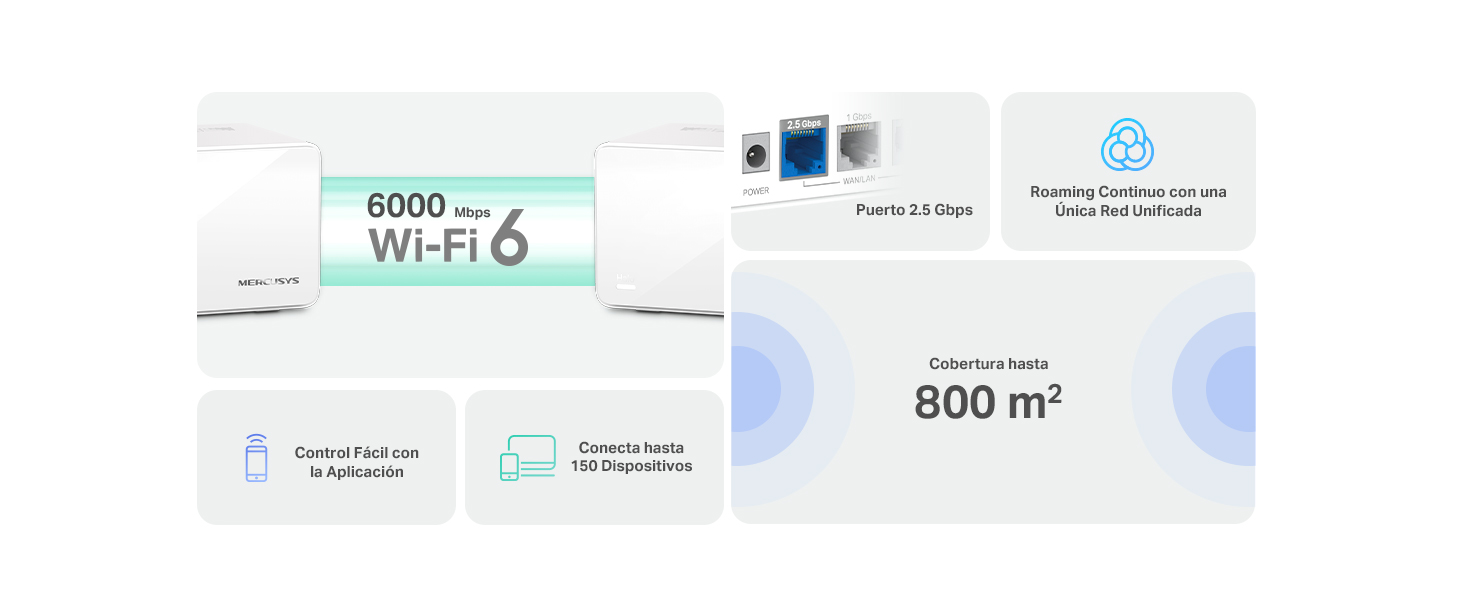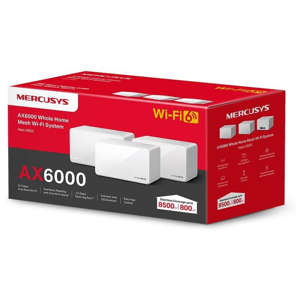 El sistema Mesh WiFi 6 MERCUSYS Halo H90X en versión de 3 unidades está diseñado para ofrecer cobertura total y rendimiento superior en hogares o ambientes exigentes. Cada nodo entrega velocidades combinadas de hasta AX6000 (4804 Mbps en 5 GHz + 1148 Mbps en 2,4 GHz), y al trabajar en conjunto bajo una sola red con roaming automático, garantiza conexión continua sin interrupciones. Con soporte para más de 150 dispositivos simultáneos, puertos Multi-Gig y gestión desde app móvil, es una solución ideal para usuarios con altas demandas de red.